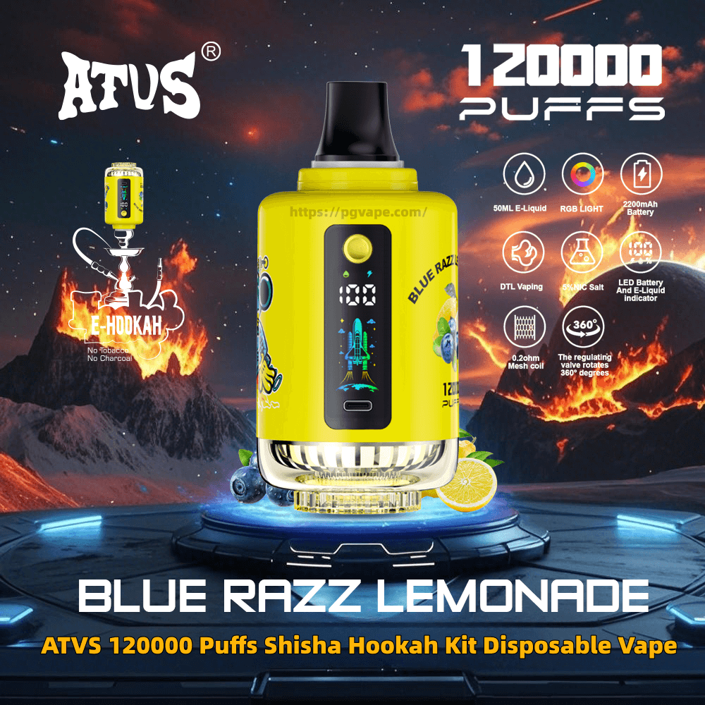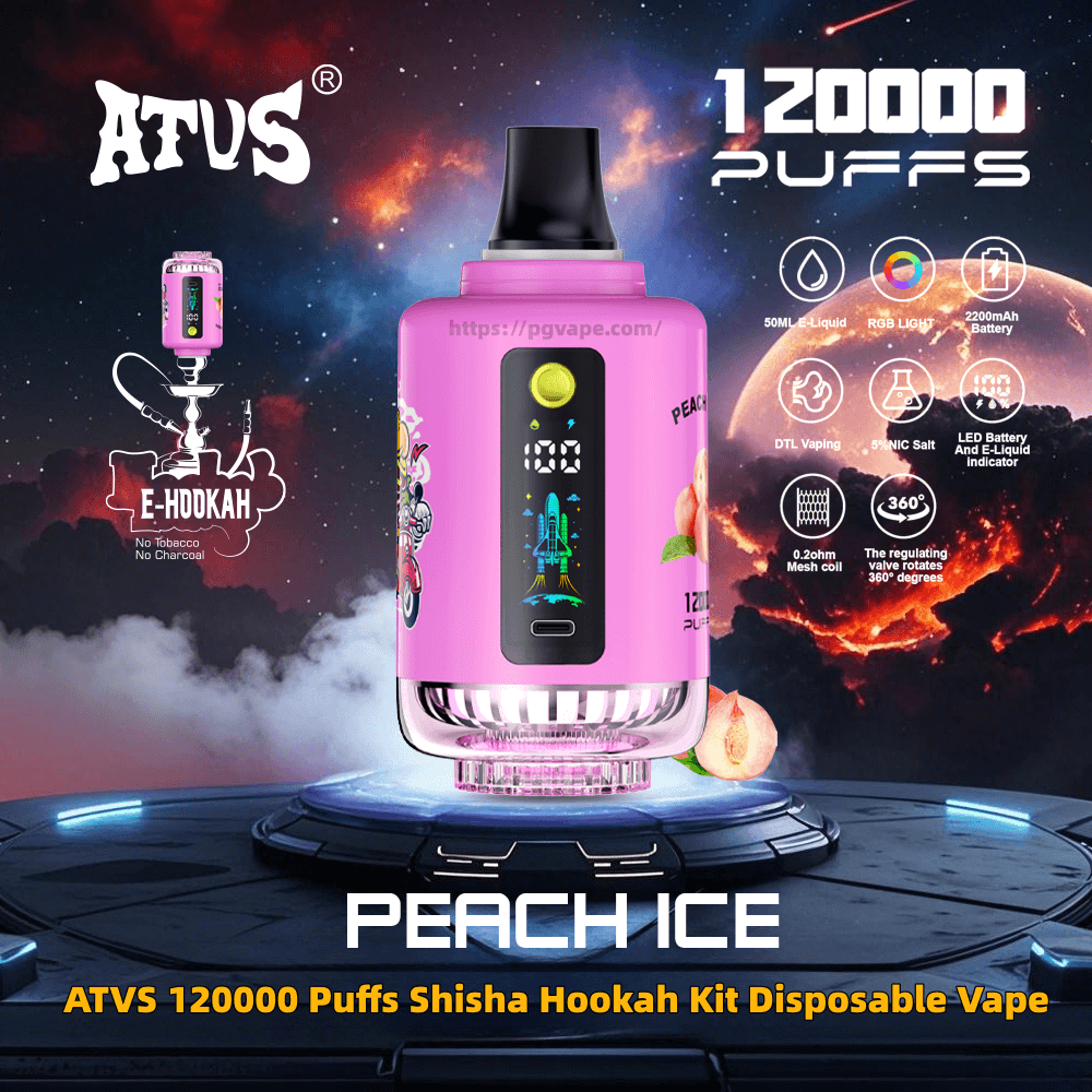 ATVS 120K Puffs DTL Hookah Head Disposable Vape redefines high-performance vaping with 120,000 ultra-long puffs and 50mL e-liquid capacity. Engineered for cloud chasers, it features a 0.2Ω mesh coil for intense flavor, 2200mAh rechargeable battery, and DTL design for massive vapor production. The 360° rotating valve and adjustable airflow enable customized draws, while the RGB lighting and LED display add futuristic flair. Choose from 10 premium flavors for the ultimate vaping experience.