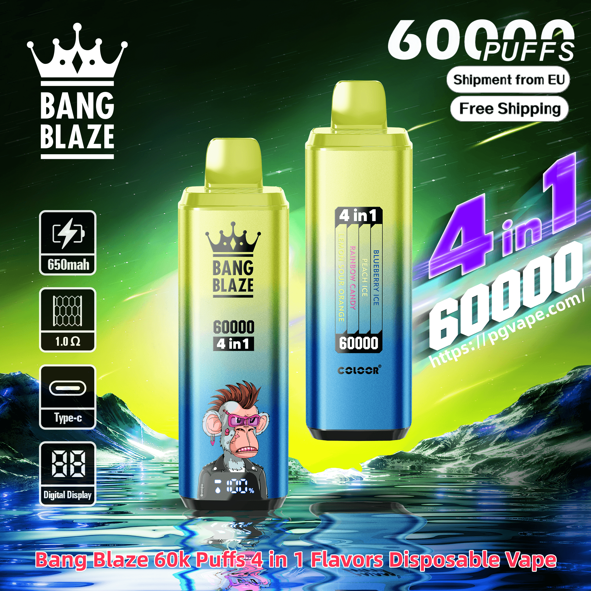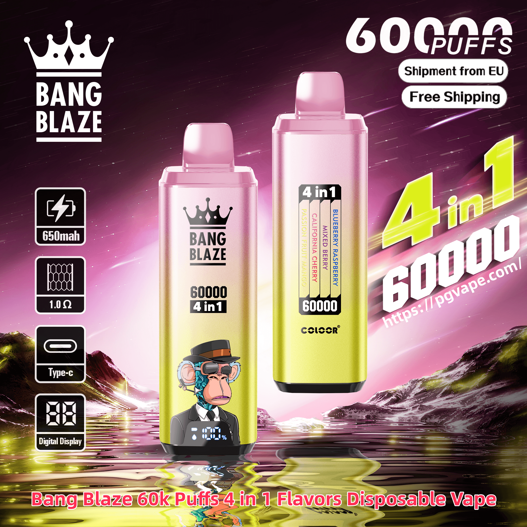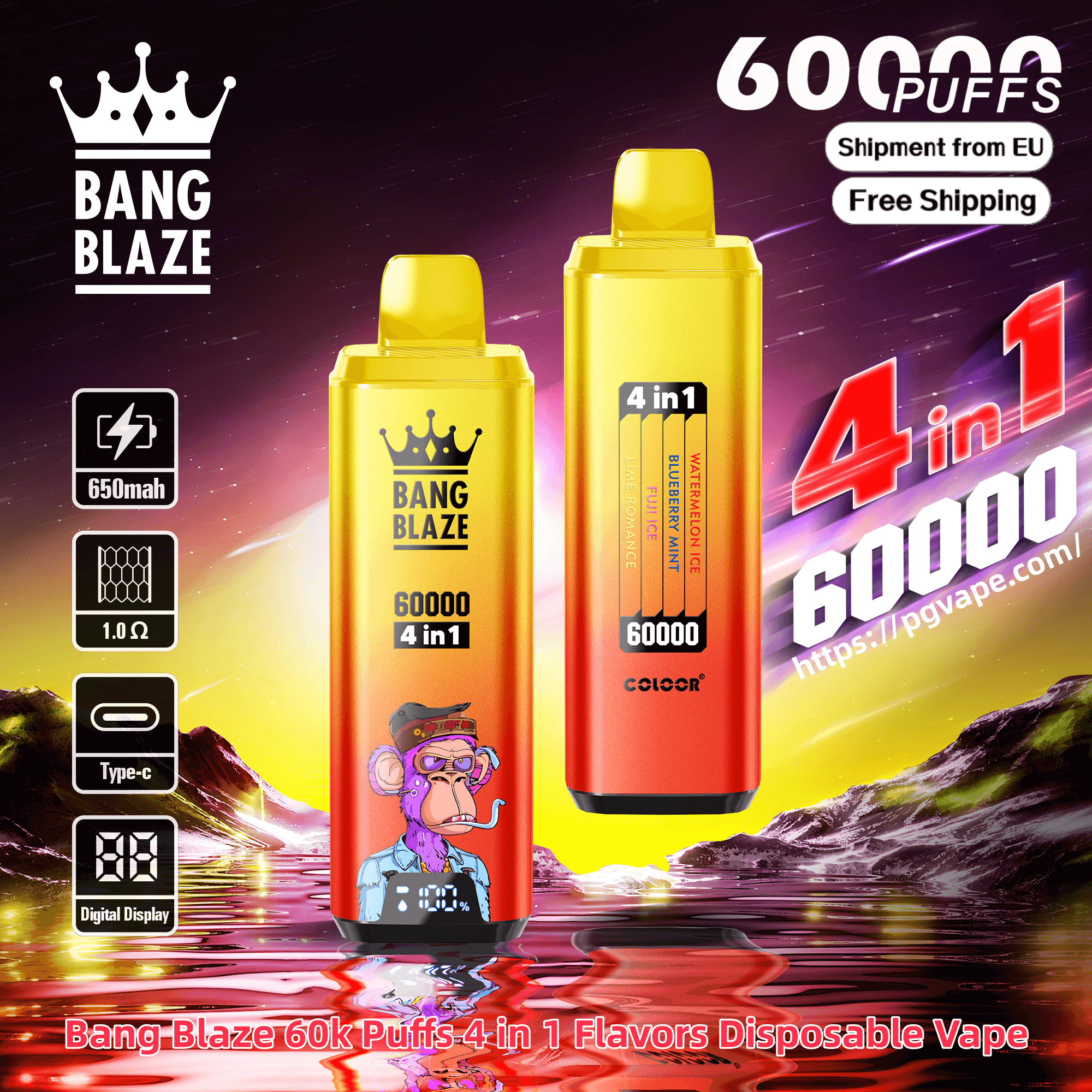 Bang Blaze 60000 | 60k Puffs 4 in 1 Flavors Disposable Vape Product Specifications: