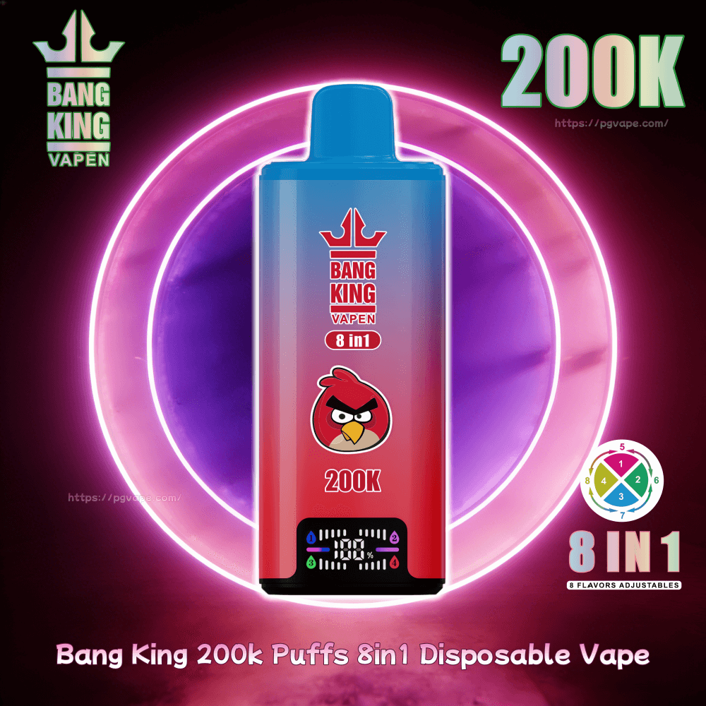 Bang King 200000 200k Puffs 8 in 1 Flavor Disposable Vape 0% 2% 3% 5%Nicotine 12Taste Smart LED Screen