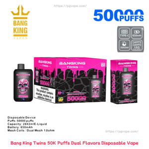 Bang King Twins 50000 | 50K Puffs Dual Flavors Disposable Vape Product Specifications