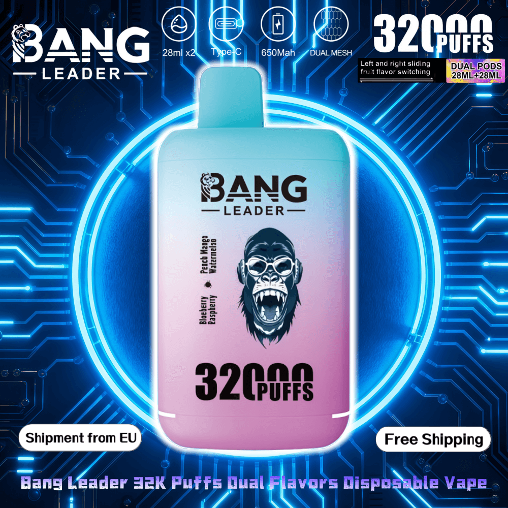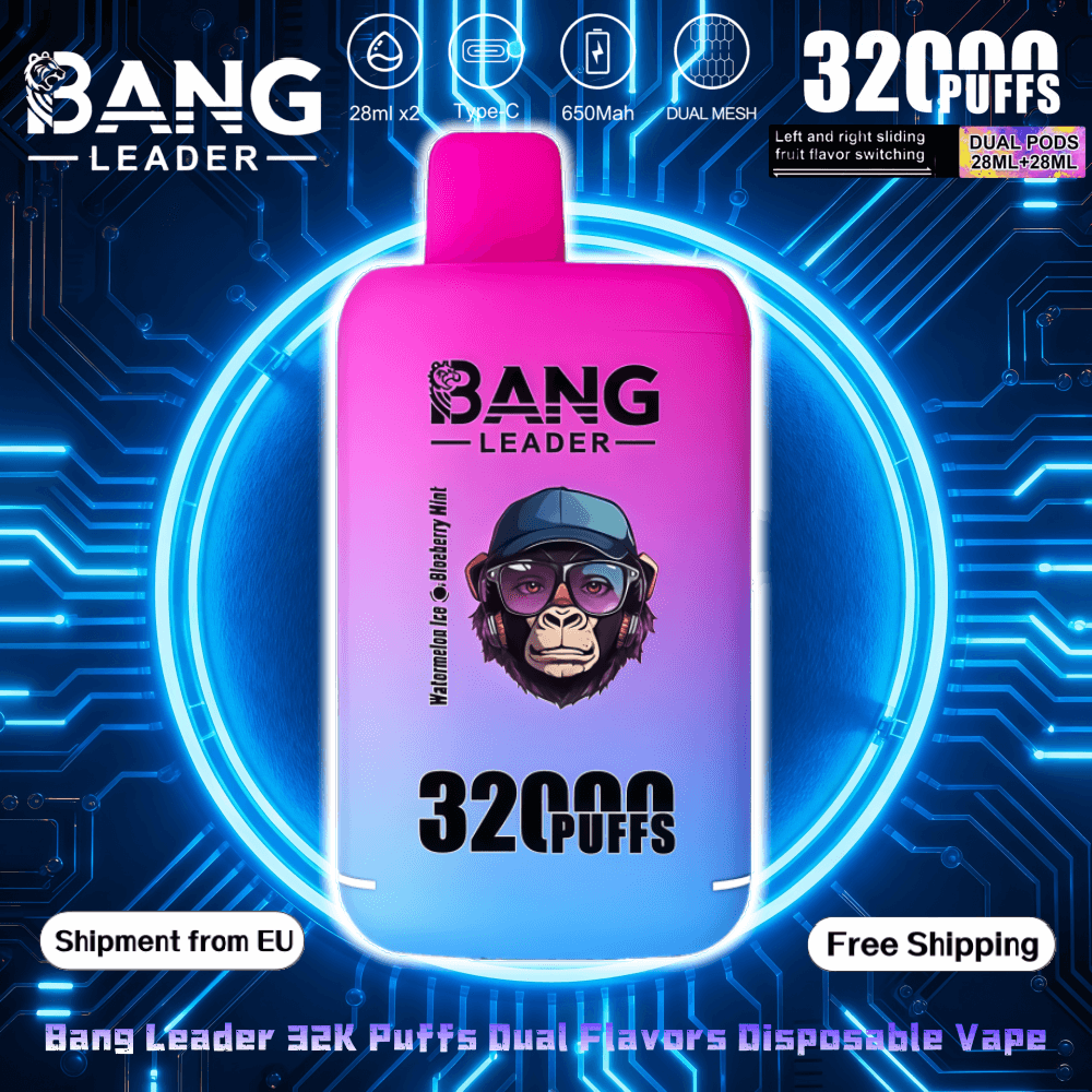 Bang Leader 32K Puffs Dual Flavors Disposable Vape redefines versatility with 32,000 puffs and a dual-pod system (28mL+28mL). Featuring dual mesh coils for enhanced flavor, and 18 flavor combinations. The innovative slide-to-switch mechanism allows instant flavor changes, while the 650mAh rechargeable battery with Type-C charging ensures uninterrupted use. Packaged 10 units per box for retail convenience.Bang Leader 32K Shipped directly from our EU warehouse, the guarantees fast, tax-free delivery and 100% authenticity—bringing you a top-tier vaping experience straight to your door.