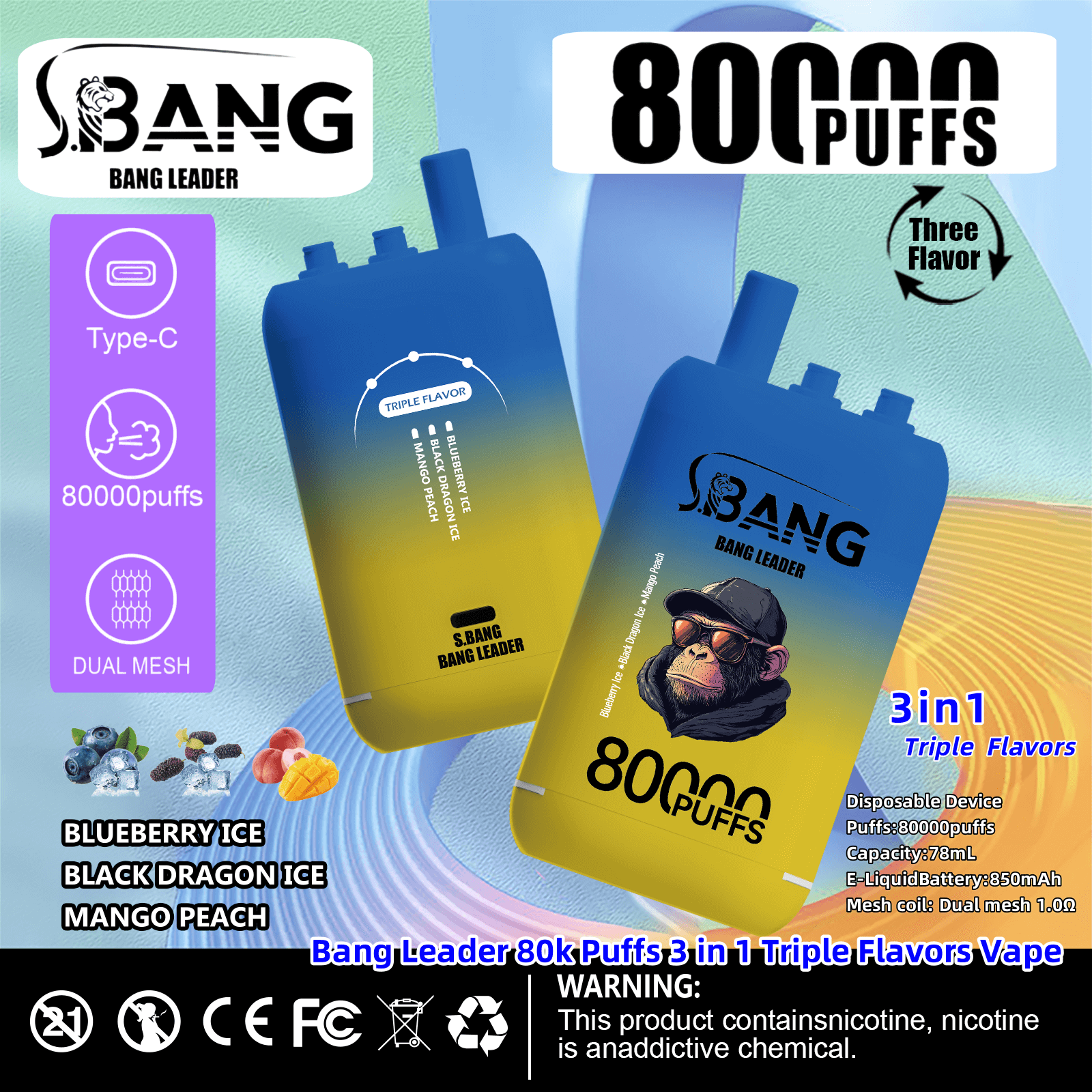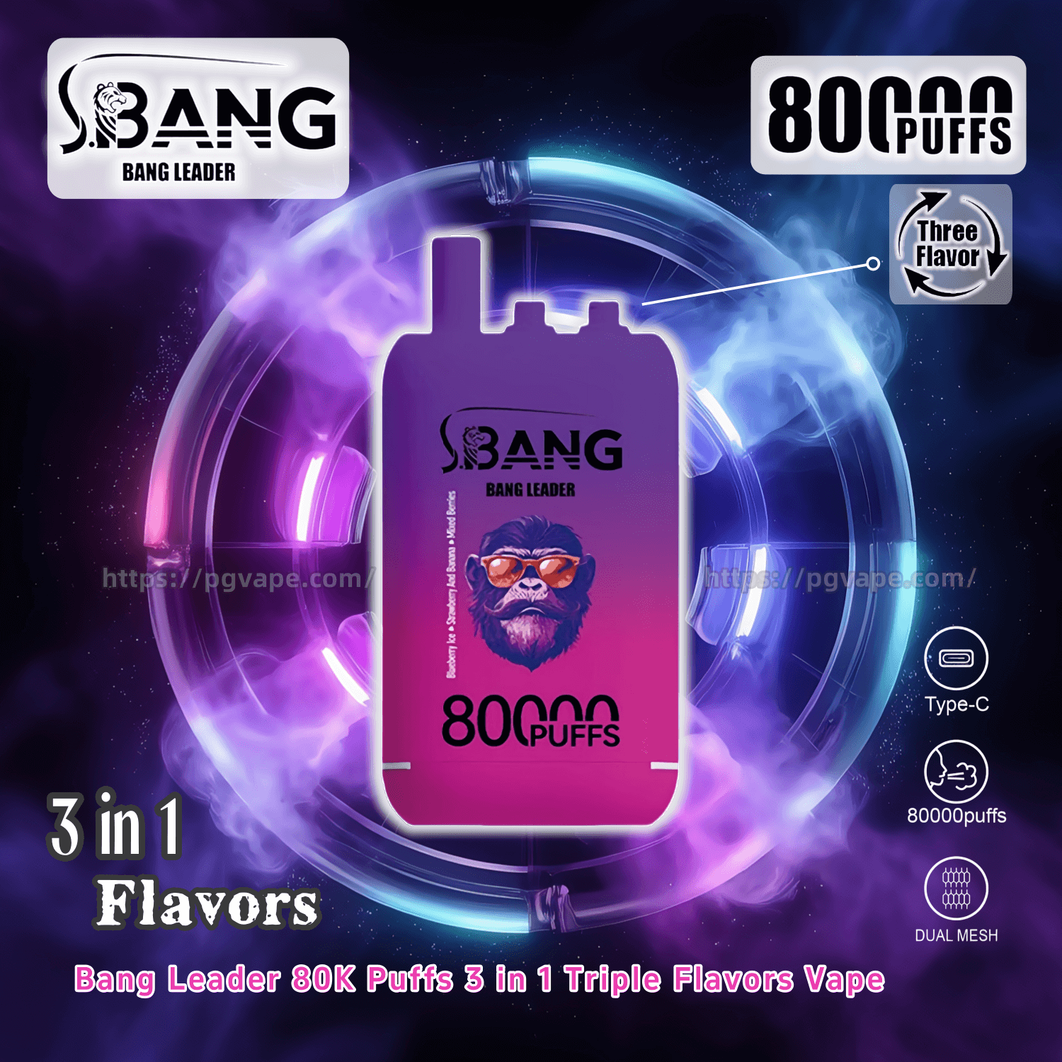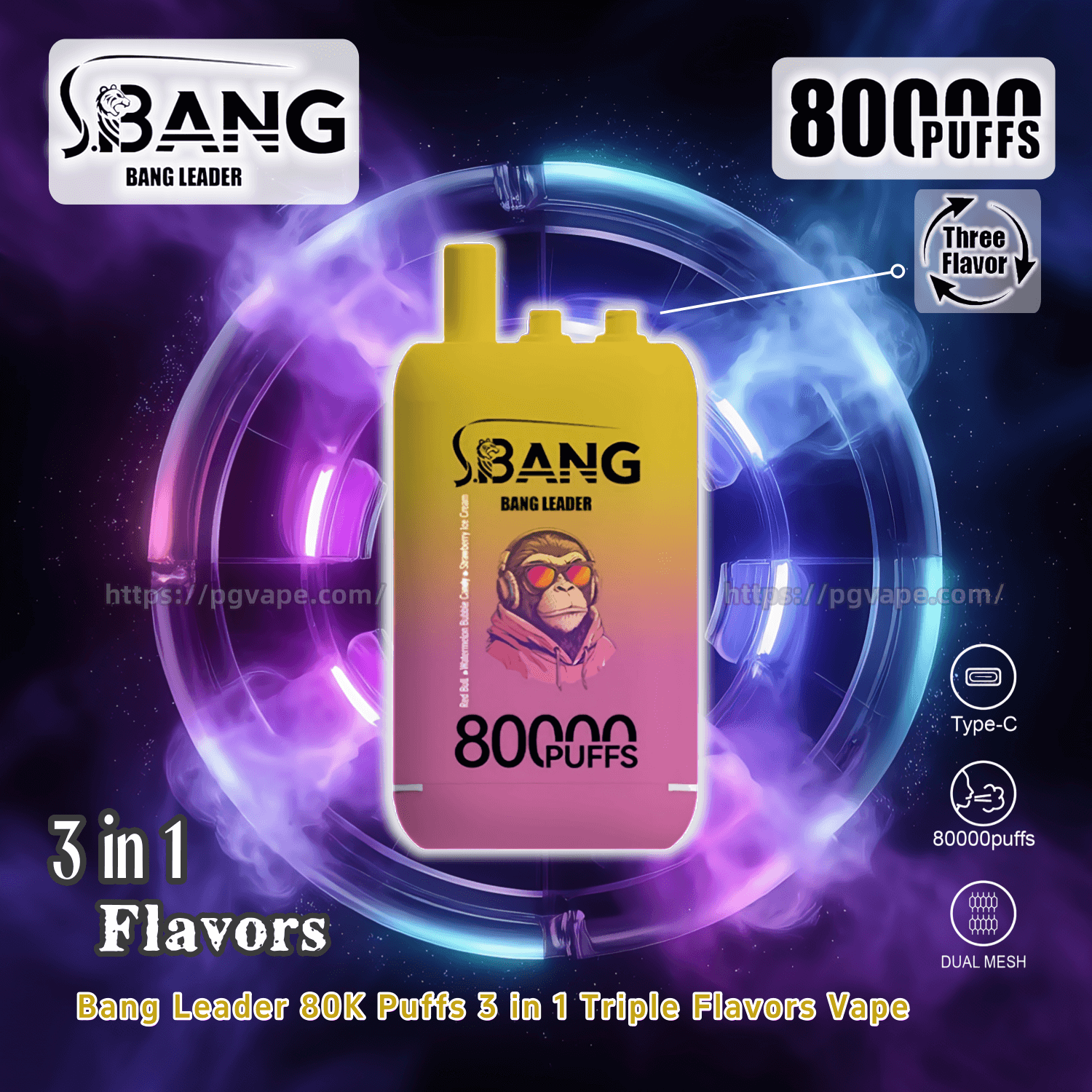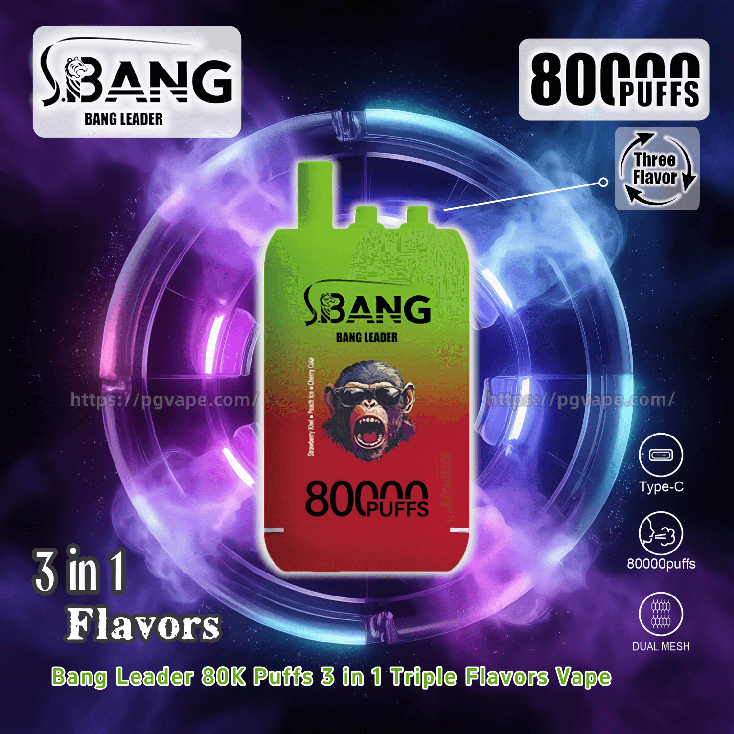 Bang Leader 80000 | 80K Puffs 3 in 1 Triple Flavors Disposable Vape Product Specifications:
