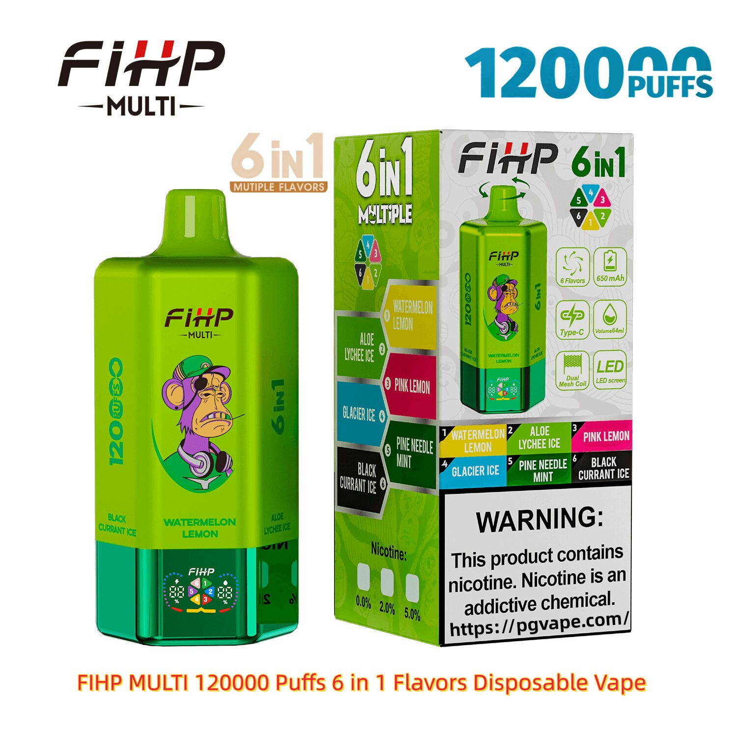 FIHP MULTI 120000 120K Puffs 6 in 1 Flavors Disposable Vape Specifications