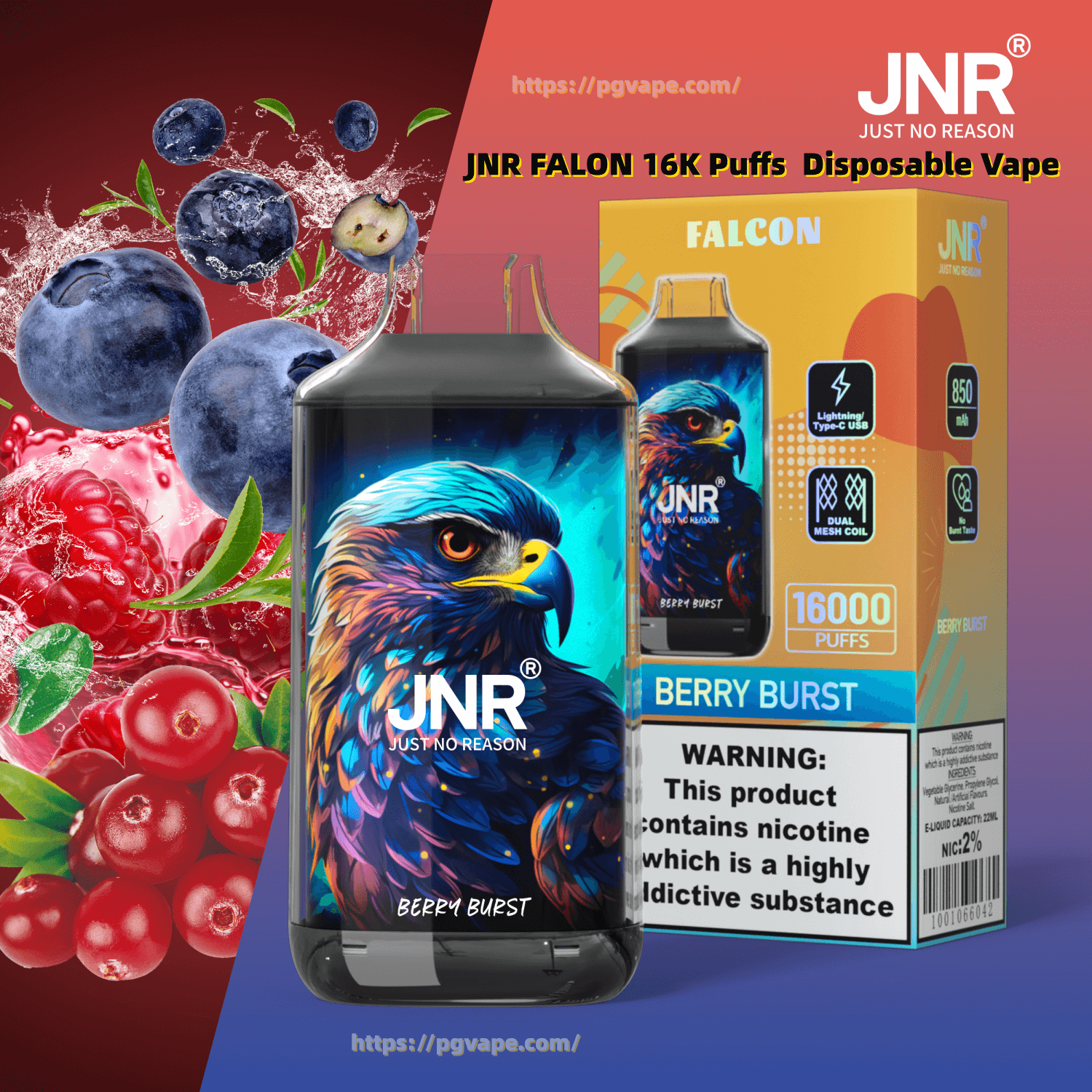 JNR FALON 16K Puffs Disposable Vape Specification