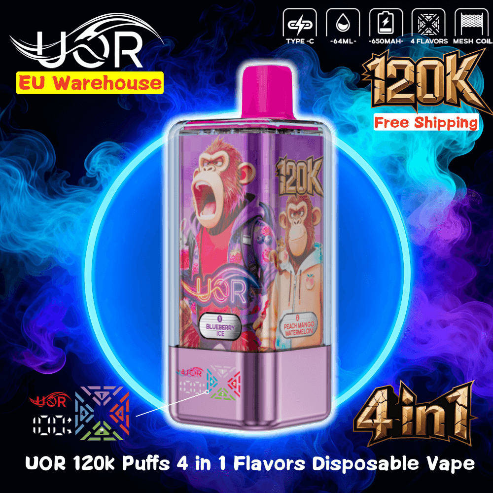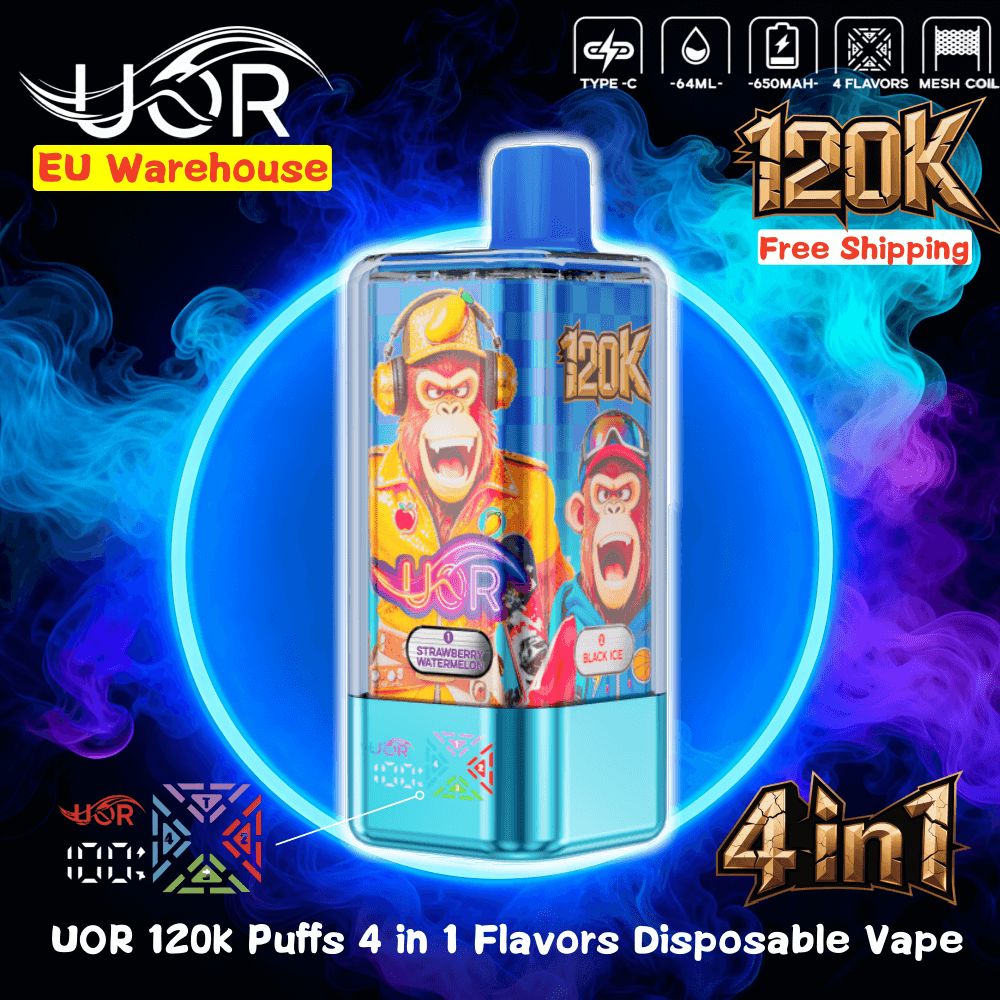 With 120K puffs, 4-flavor flexibility, and 64mL capacity, the UOR 120000 dominates the premium disposable market. 10 flavor sets and smart LED tracking offer unmatched variety.