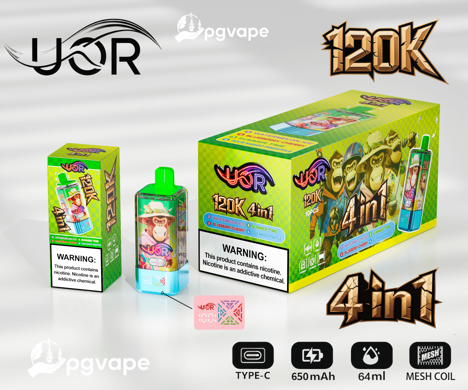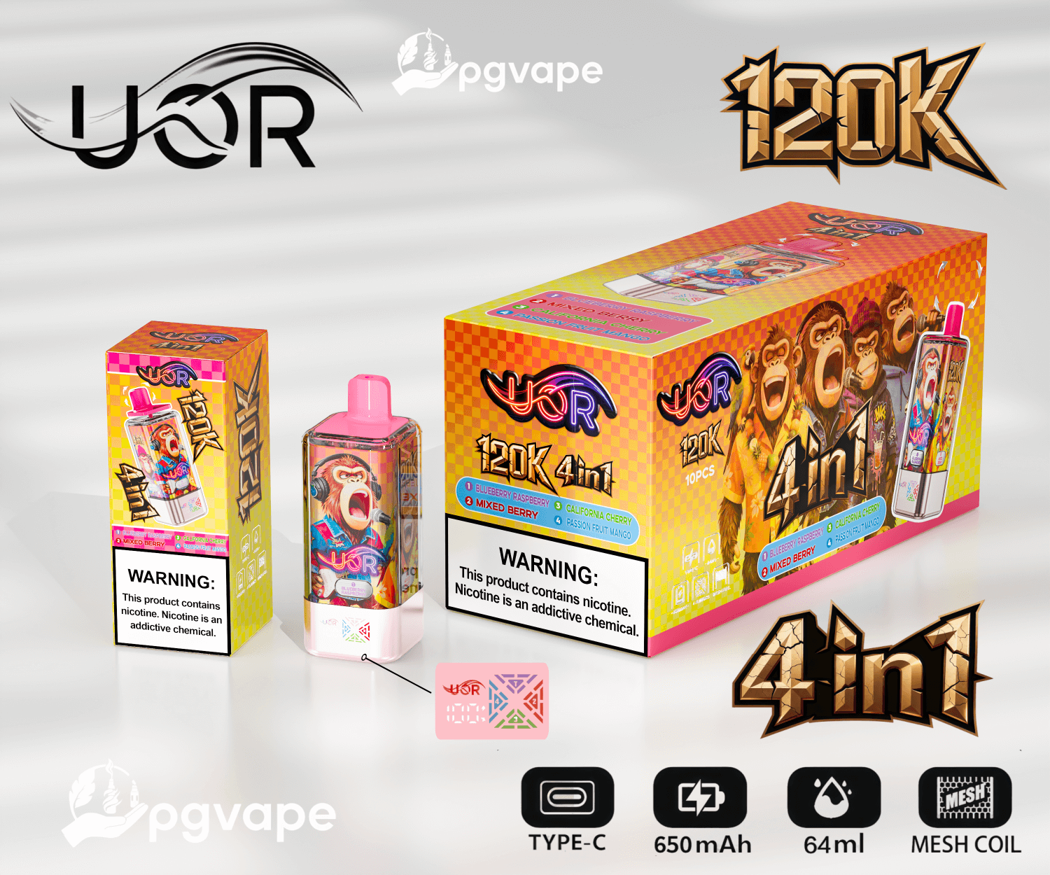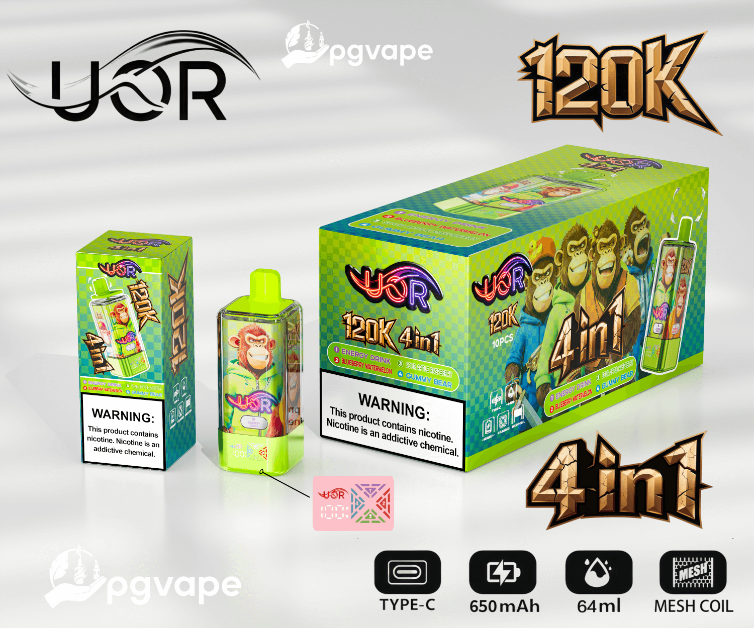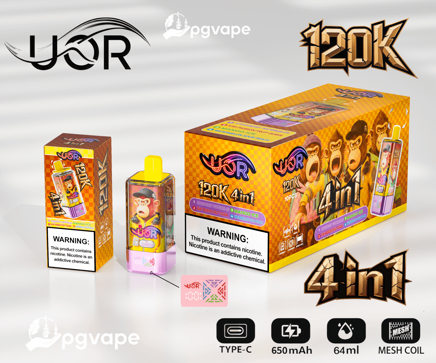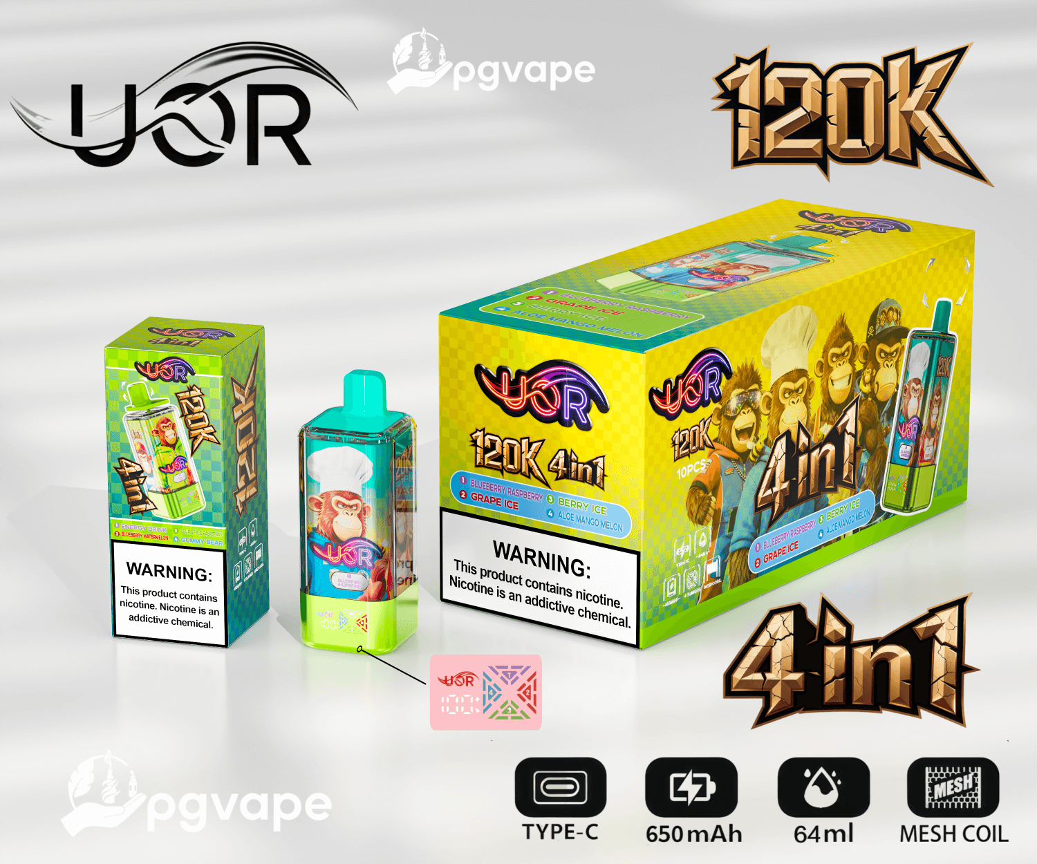 UOR 120000 | 120k Puffs 4 in 1 Flavors Disposable Vape | Shipment from EU | Free Shipping | Vape Factory Direct