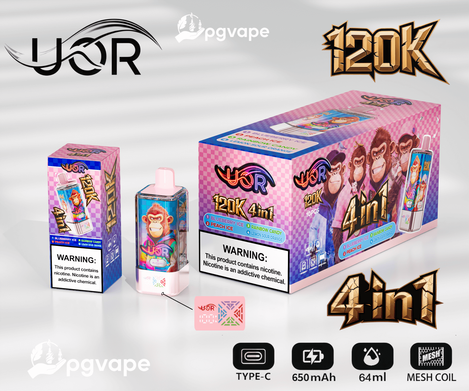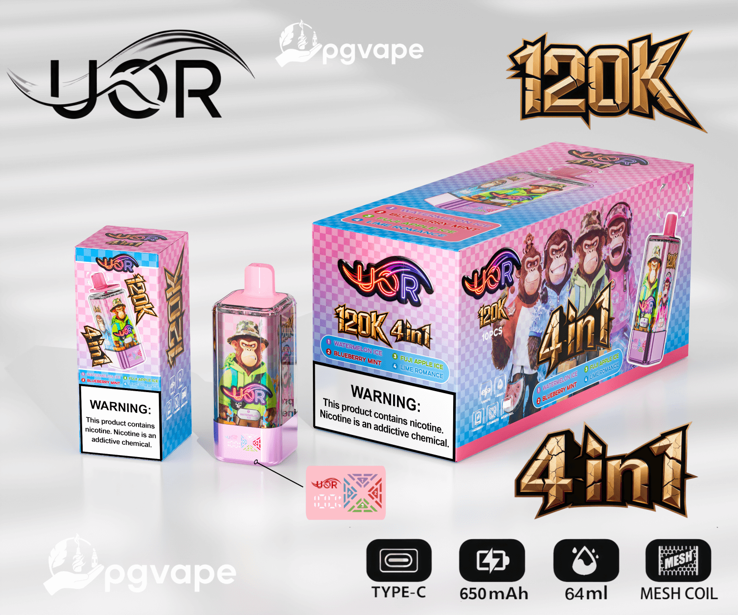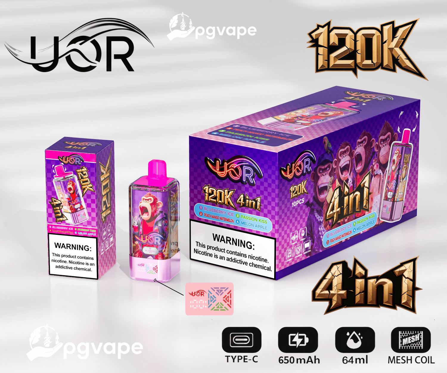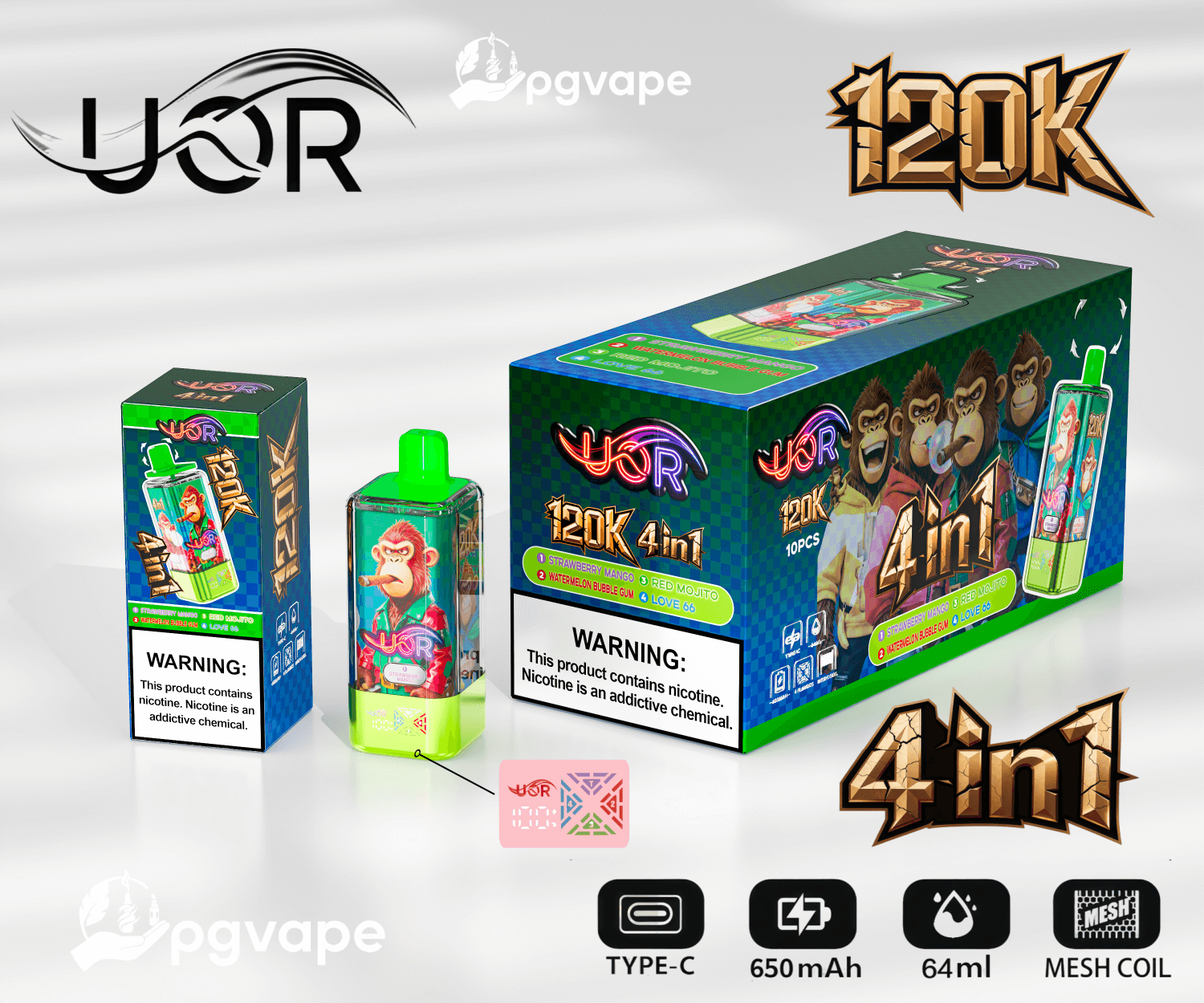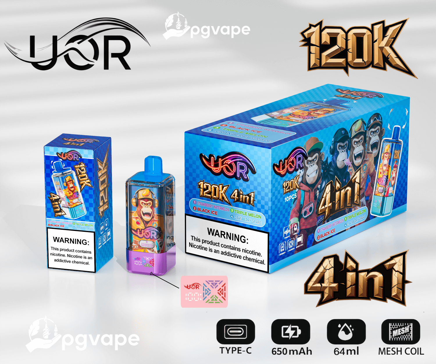 UOR 120000 | 120k Puffs 4 in 1 Flavors Disposable Vape Product Specifications