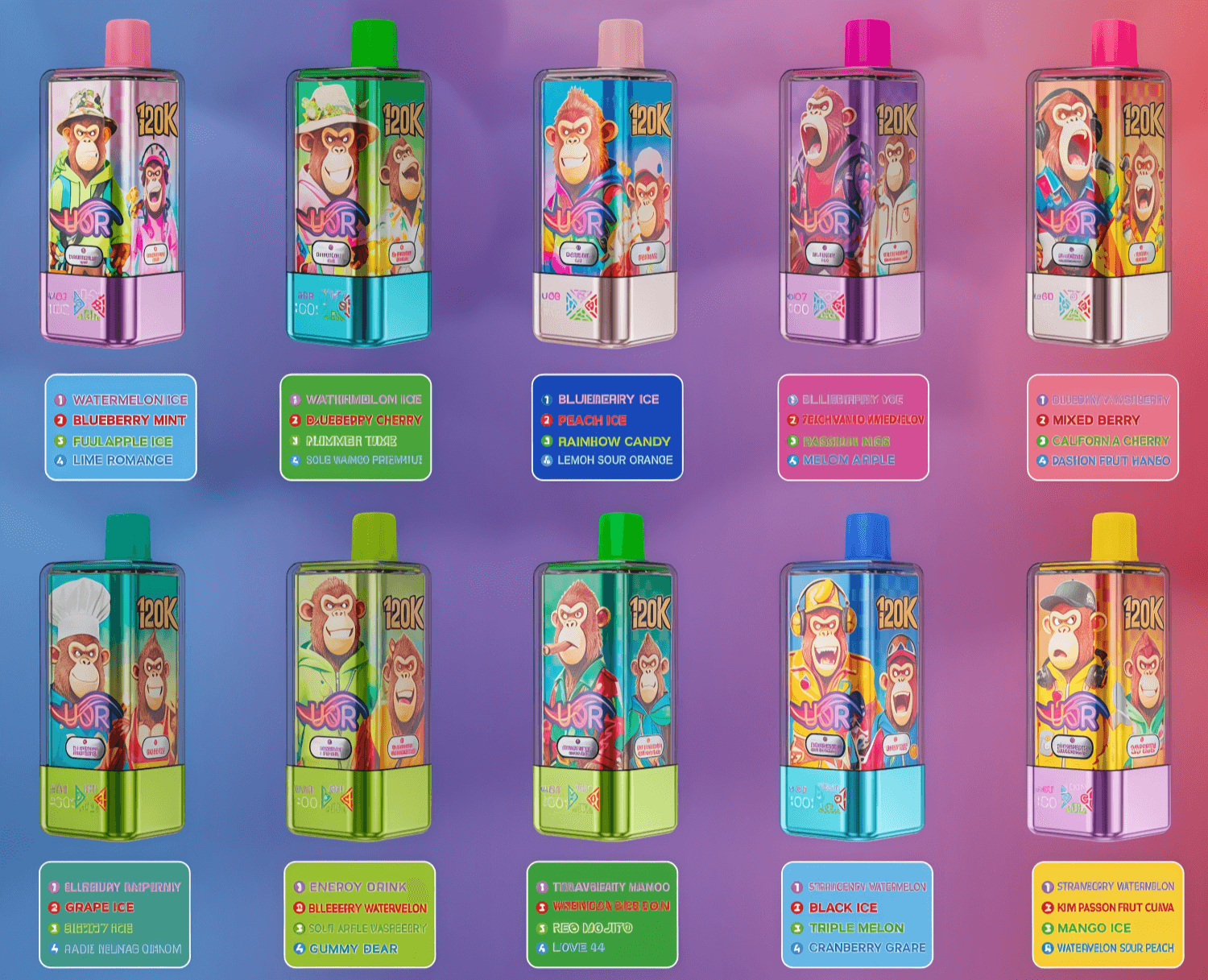 10.Strawberry Watermelon / Kiwi Passion Fruit Guava / Mango Ice / Watermelon Sour Peach