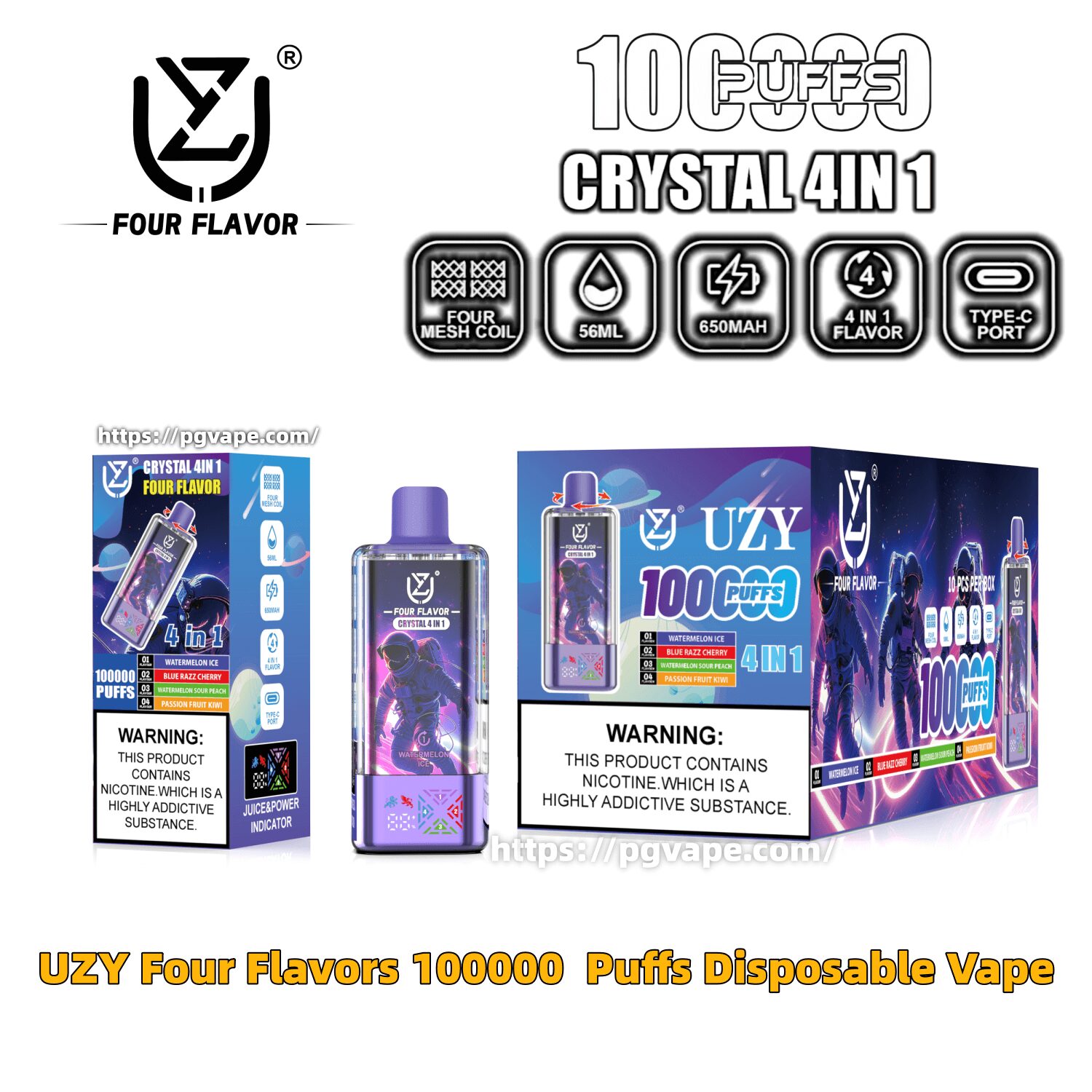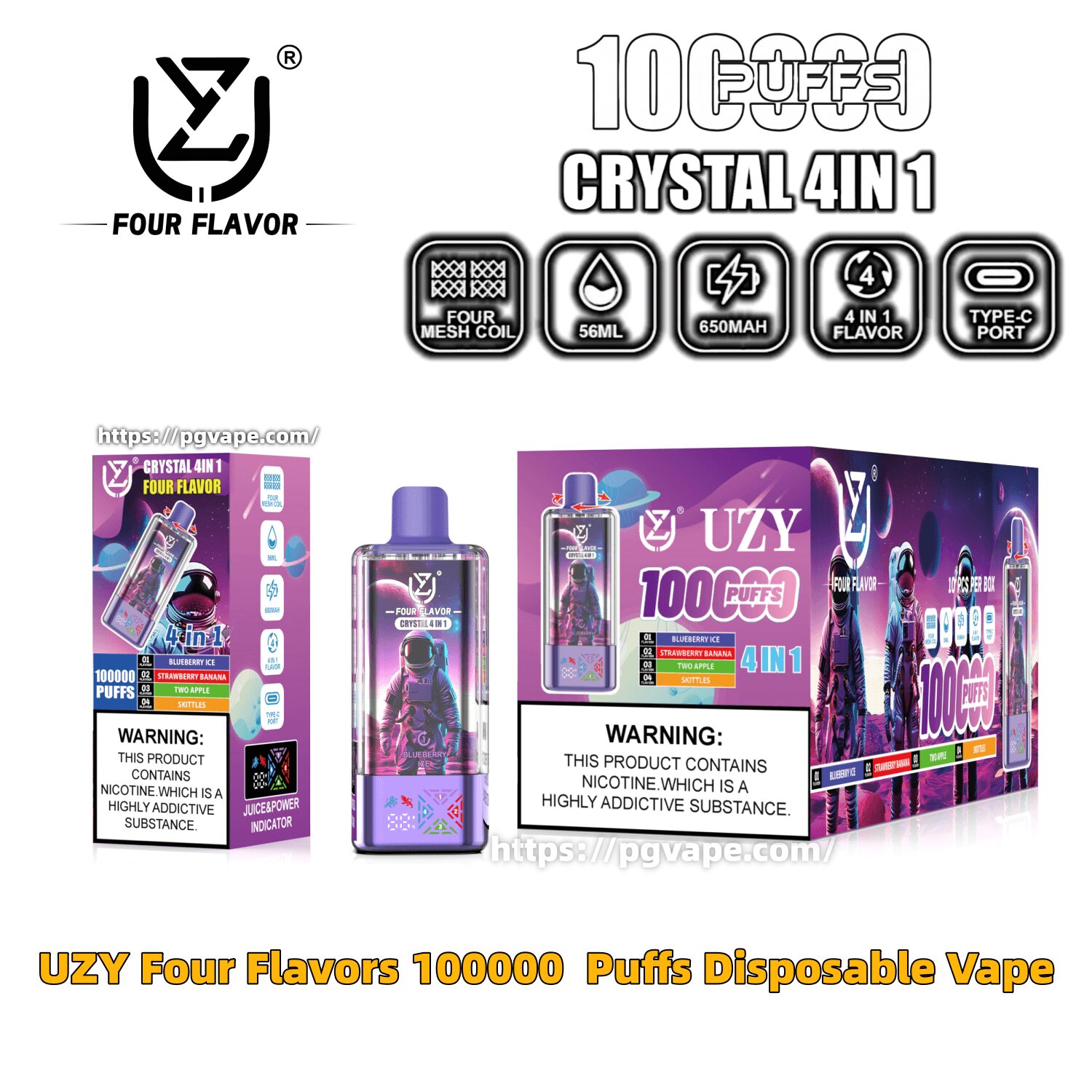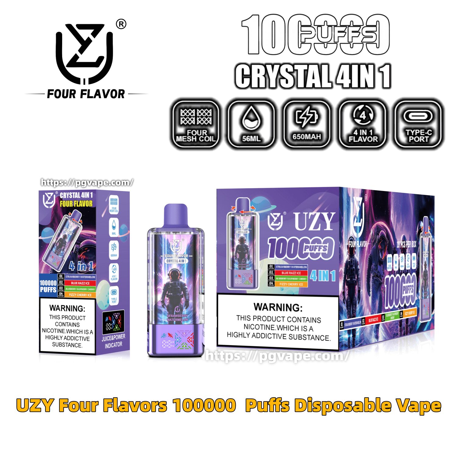 UZY Four Flavors 100000 | 100K Puffs Crystal 4 In 1 Flavors Disposable Vape Specifications