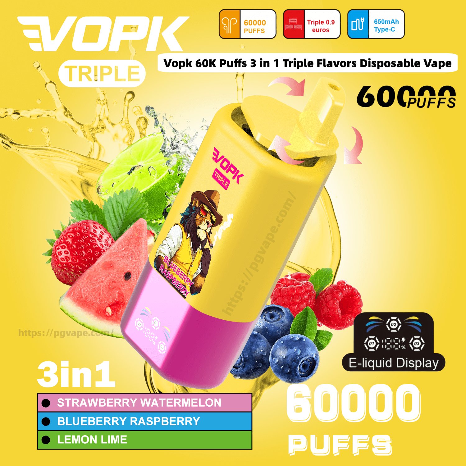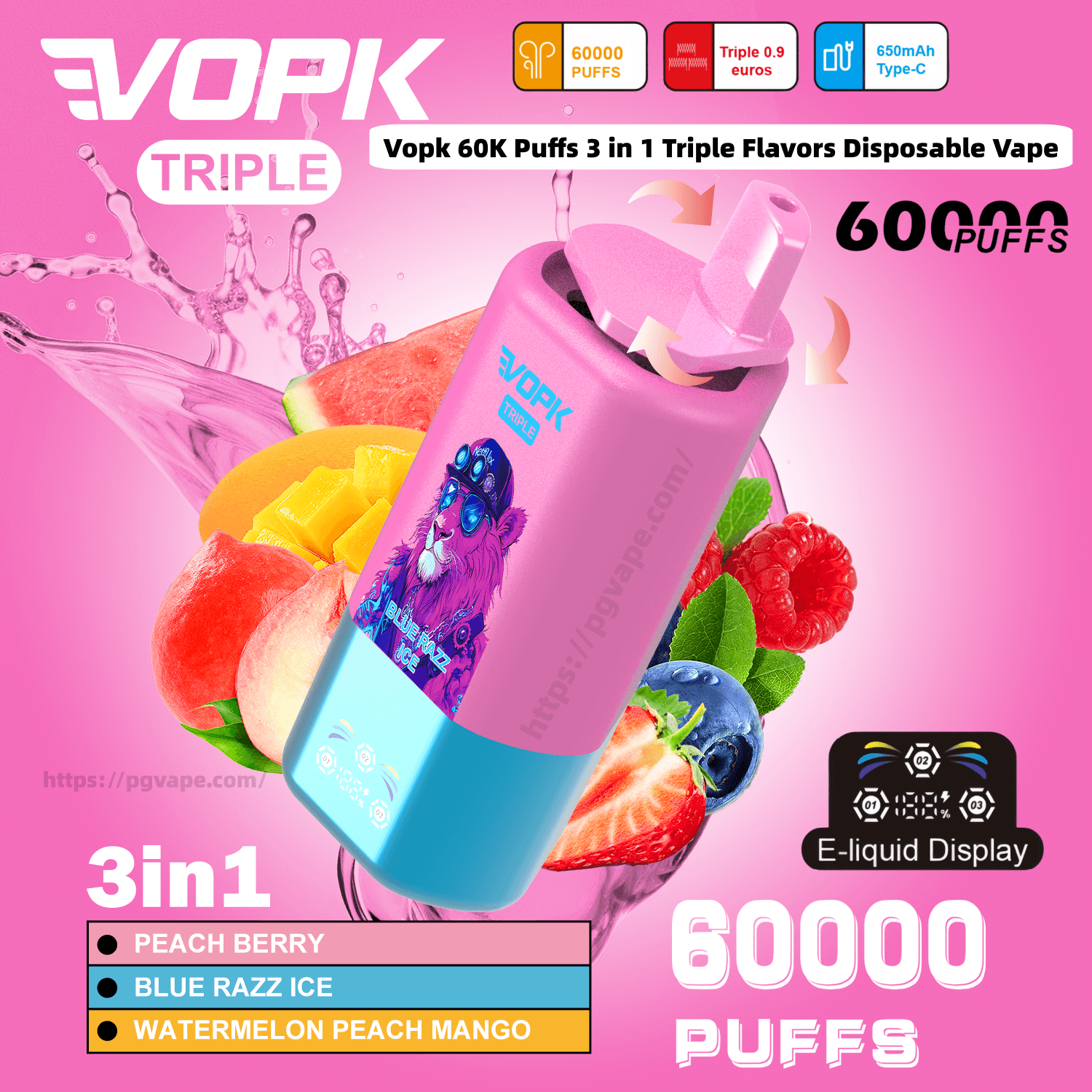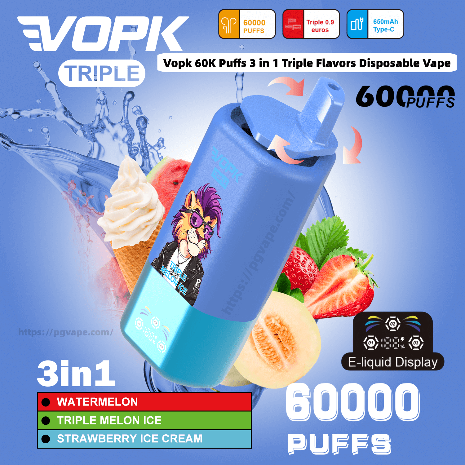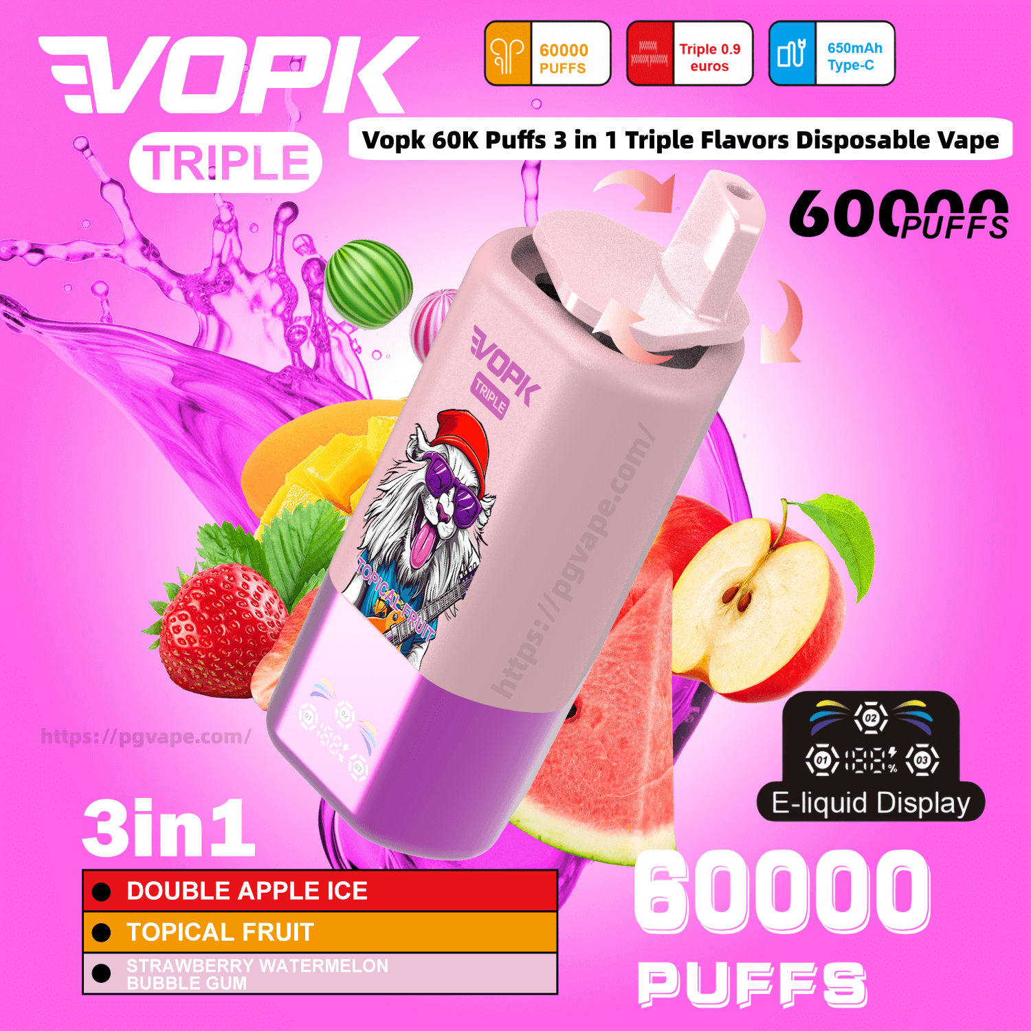Vopk Triple 60K Puffs 3 in 1 Flavors Disposable Vape Flavor List