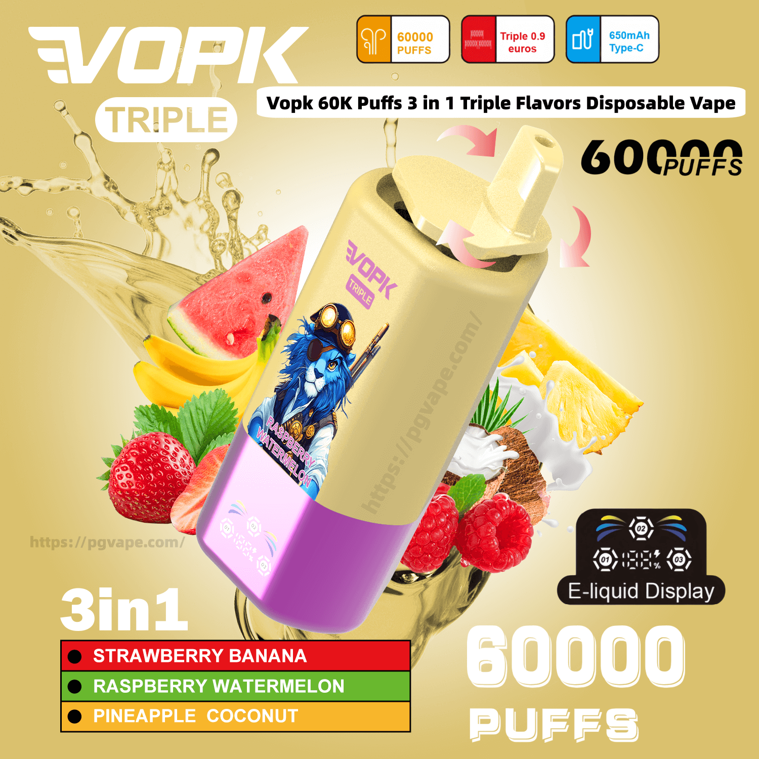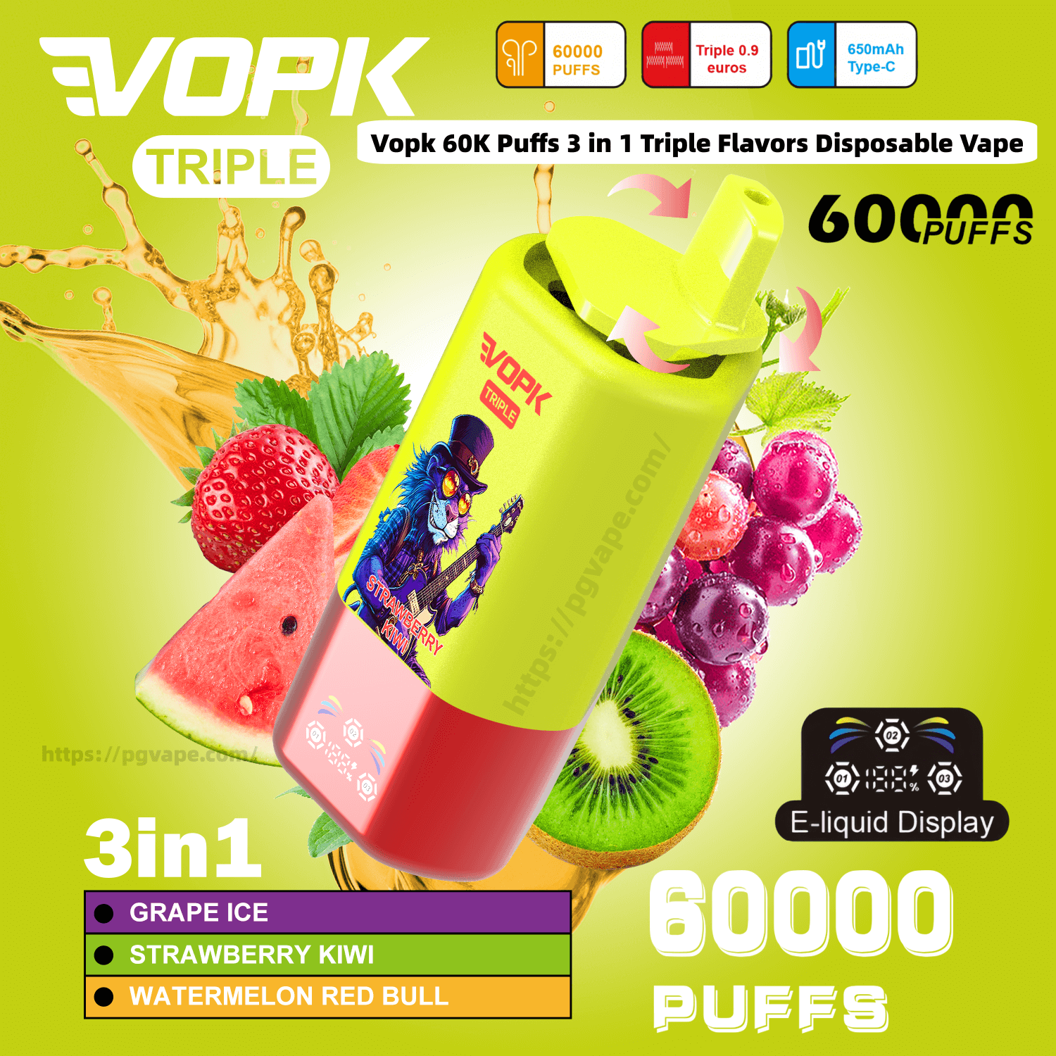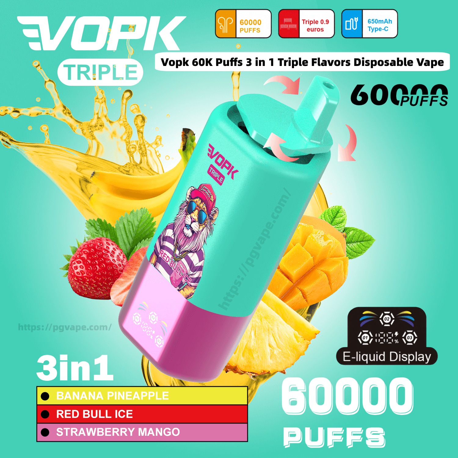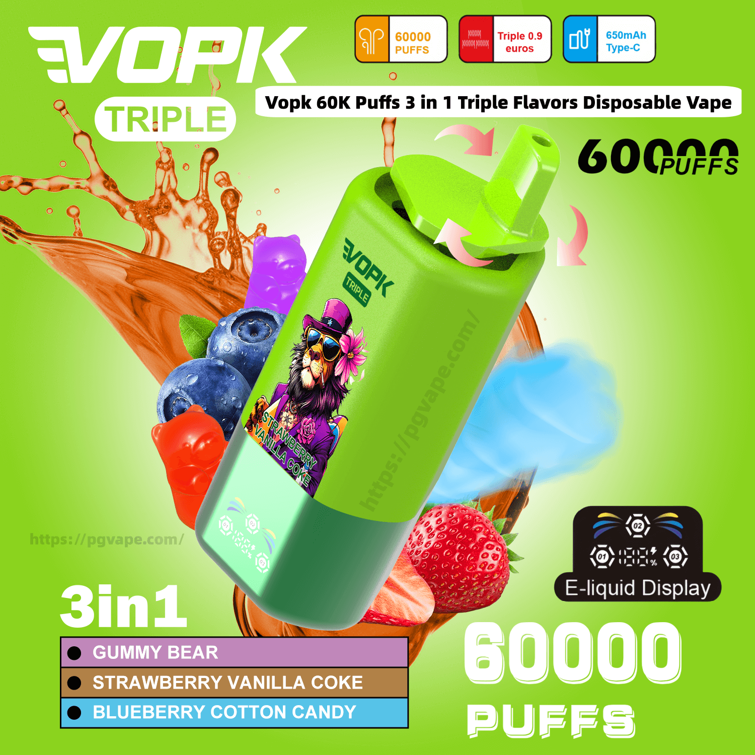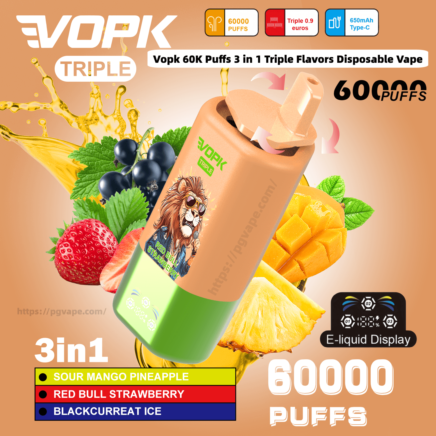 Vopk Triple 60K Puffs 3 in 1 Flavors Disposable Vape Flavor List