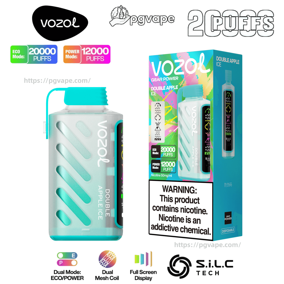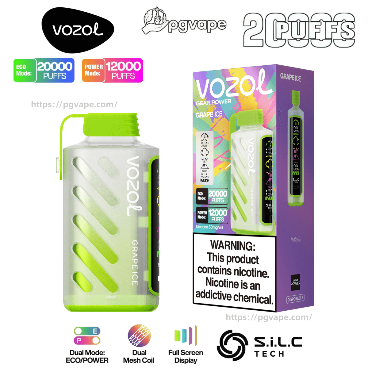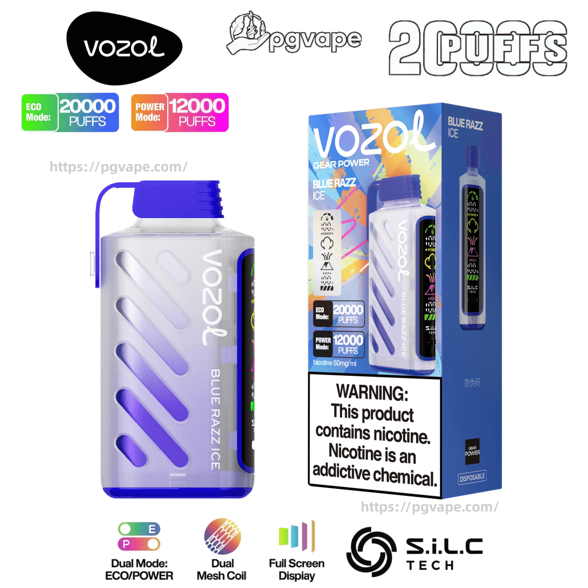 Vozol Gear Power 20K Delivers 20,000 Ultra-Long Puffs With 20ML Pre-Filled E-Liquid And A 650MAH Rechargeable Battery. Featuring Dual Power Modes, Dual Mesh Coil, And Full-Screen Smart Display, This Device Offers Smooth, Consistent Flavor For An Unmatched Vaping Experience.
