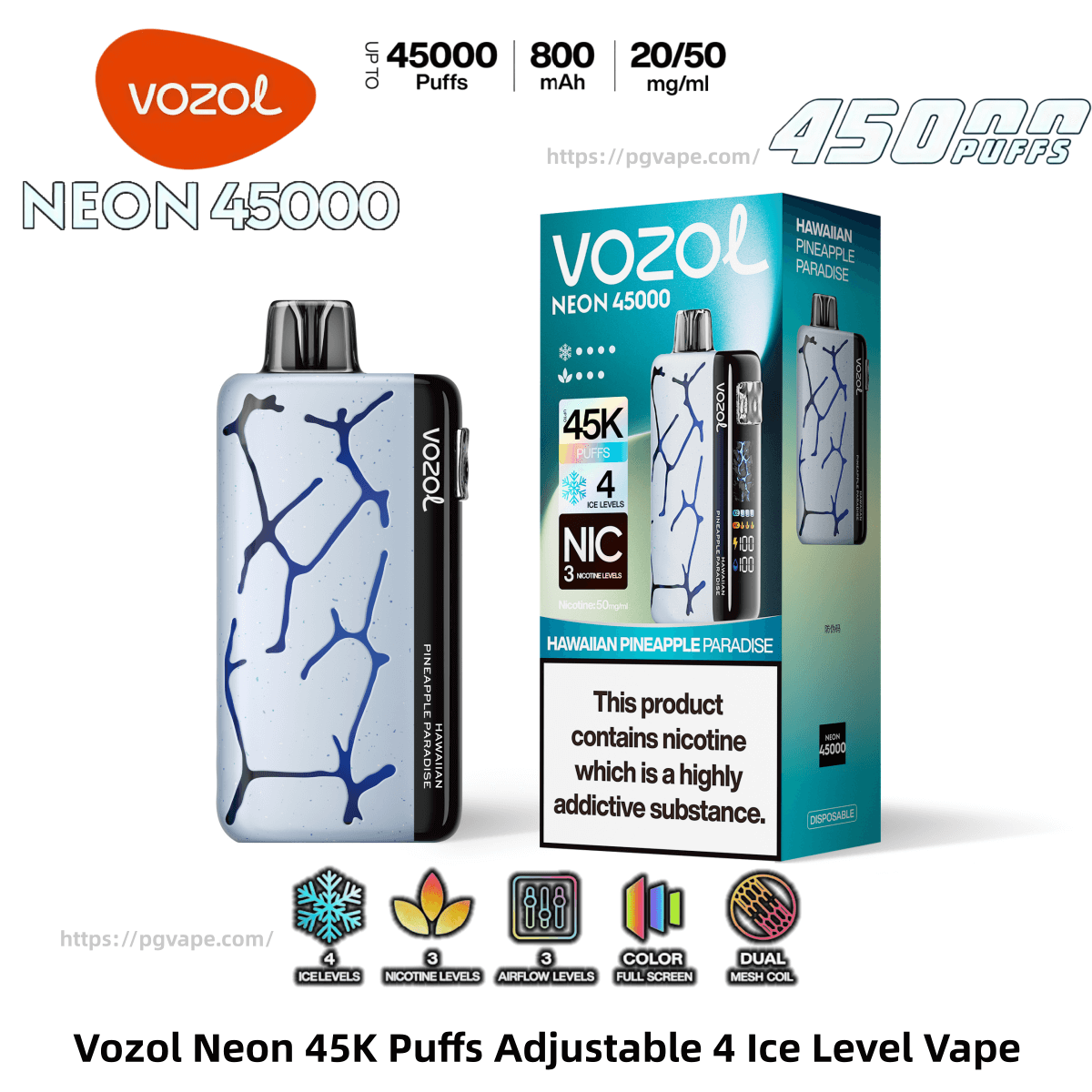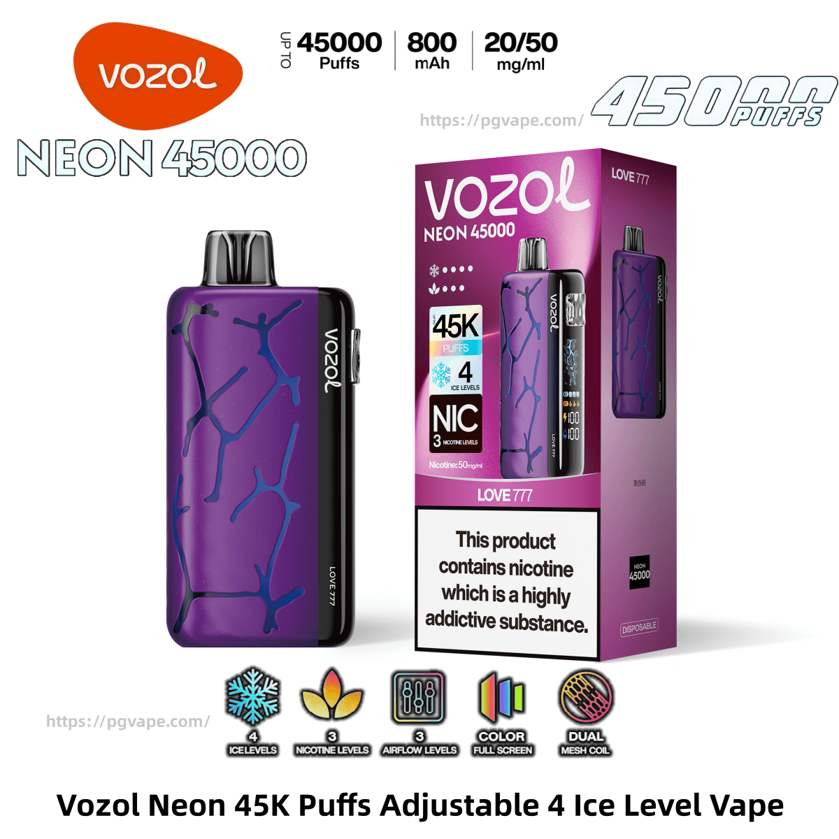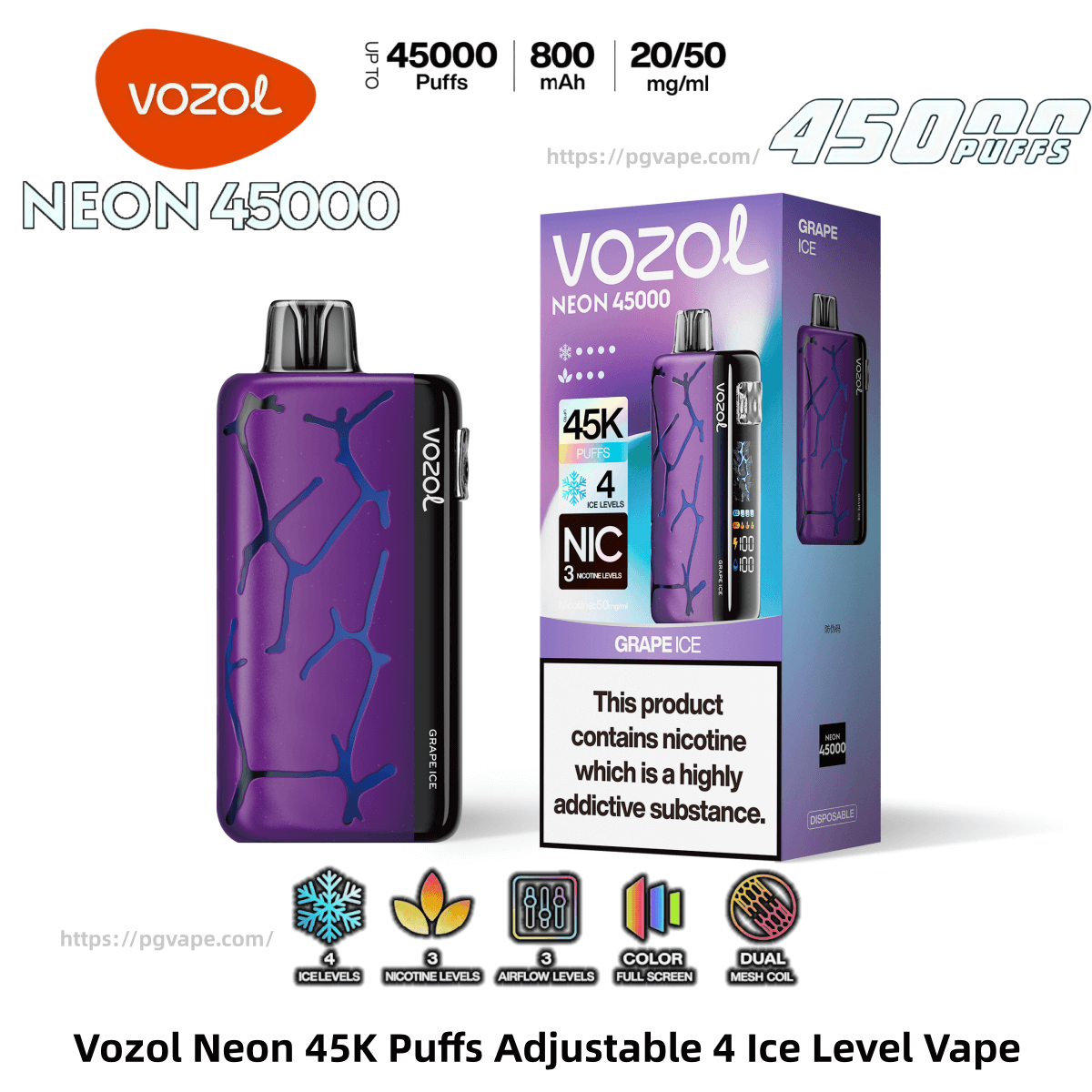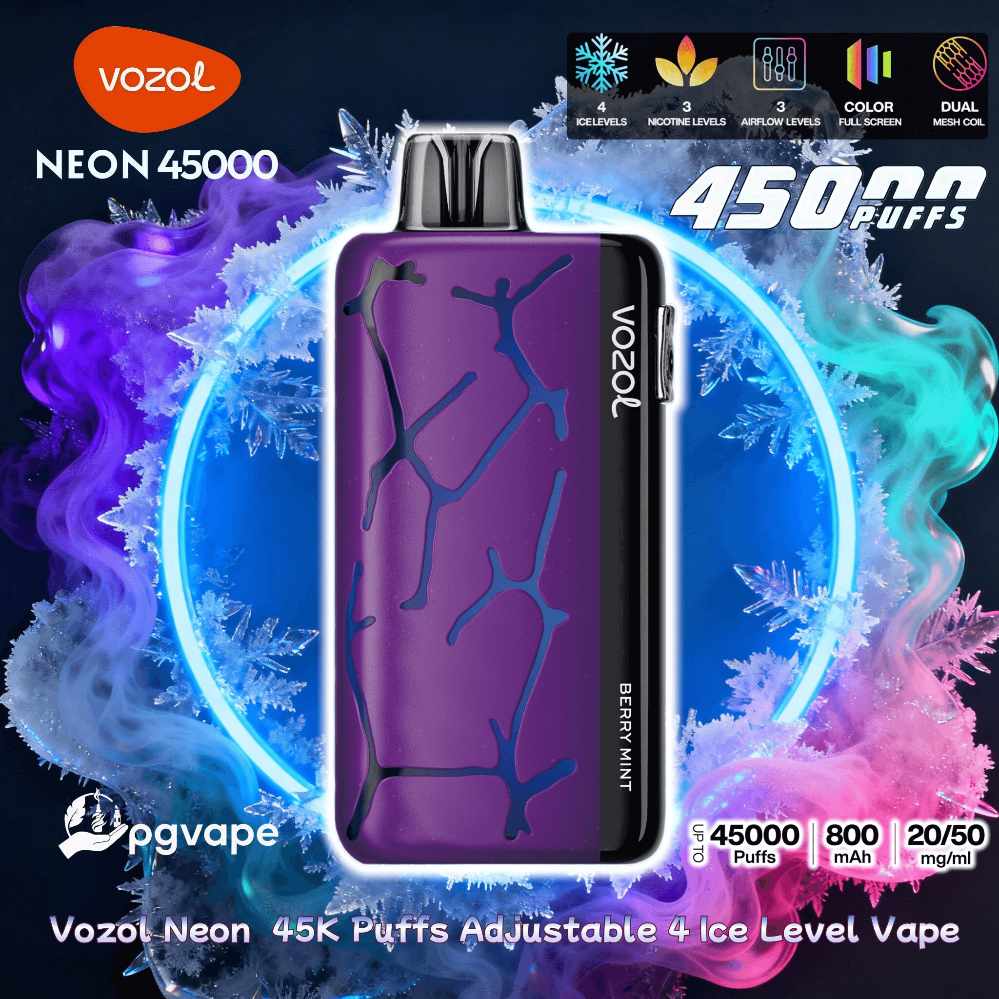 Vozol Neon 45000 45K Puffs Adjustable 4 Ice Level Disposable Vape Specifications