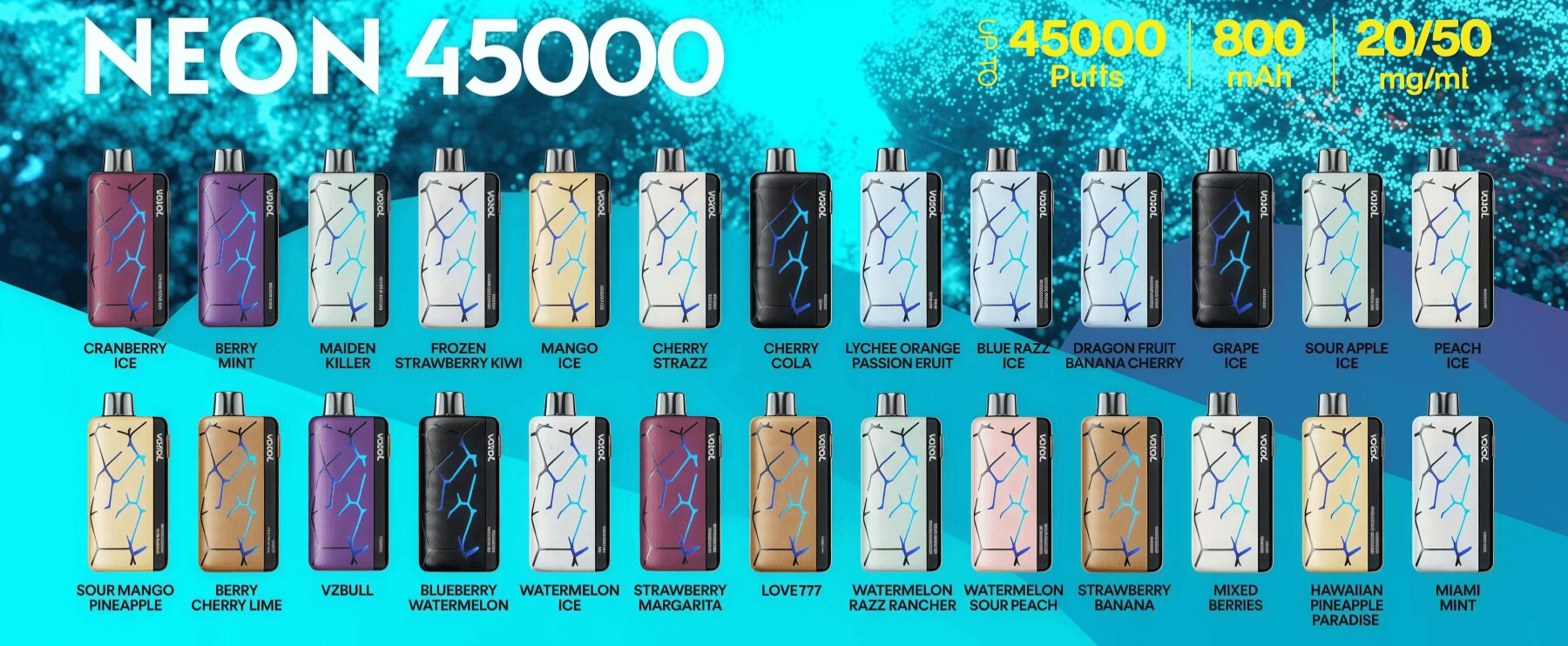 Vozol Neon 45000 45K Puffs Adjustable 4 Ice Level Disposable Vape Flavor List