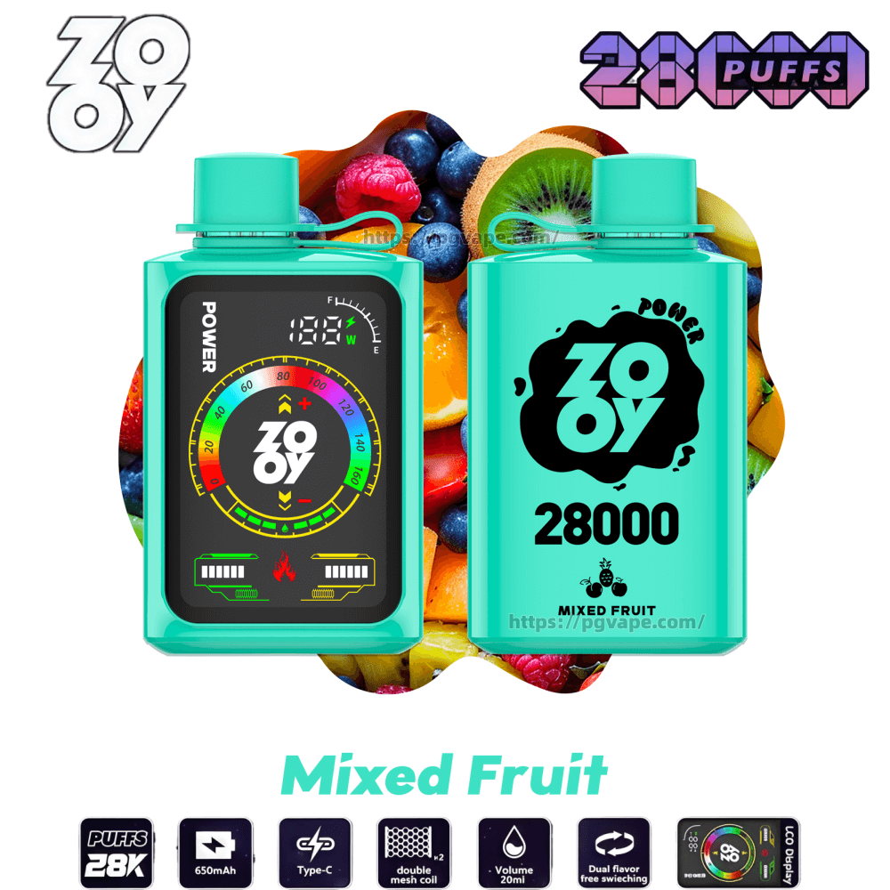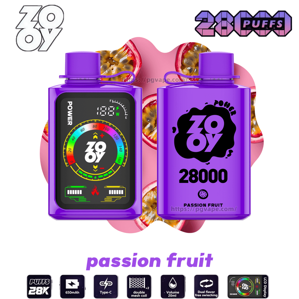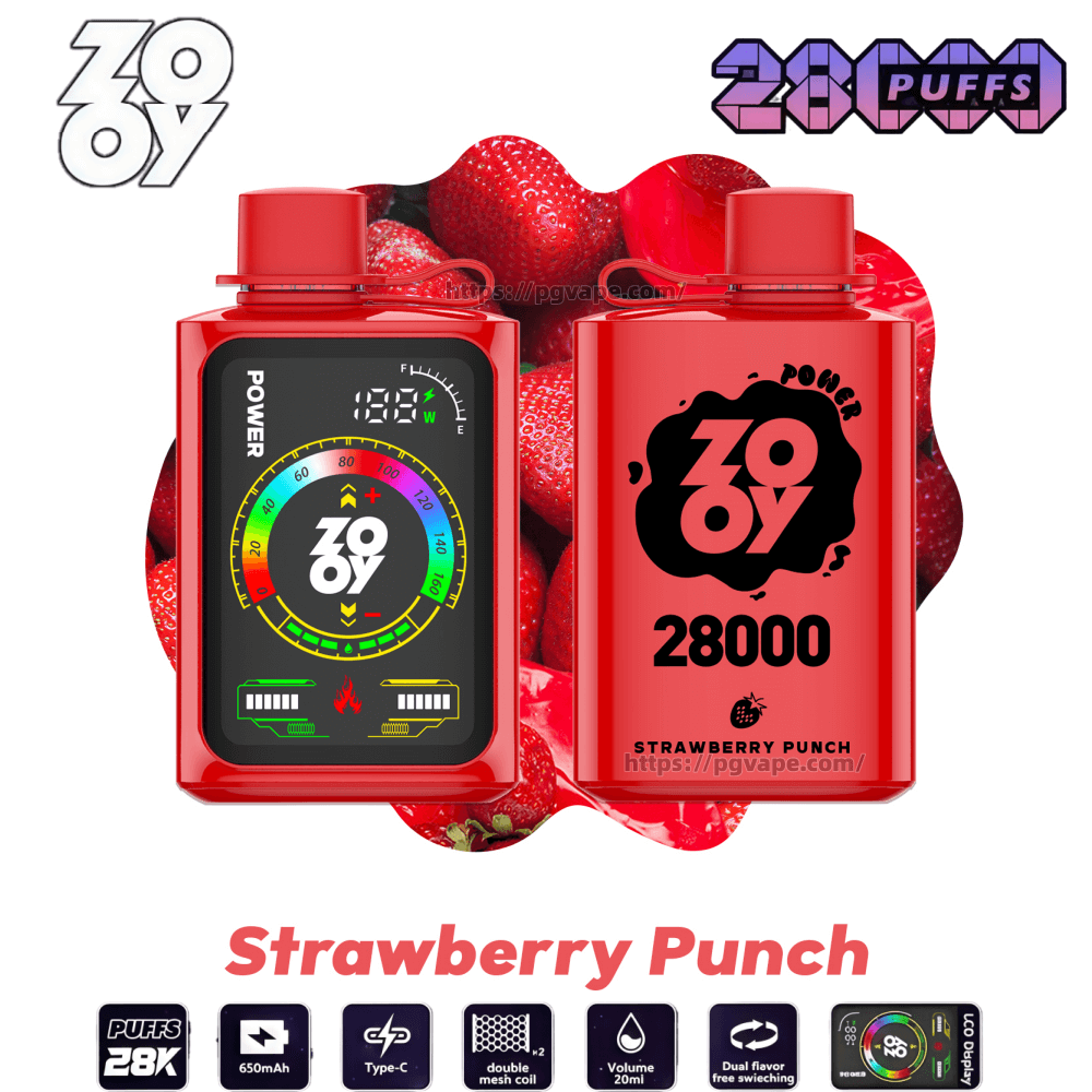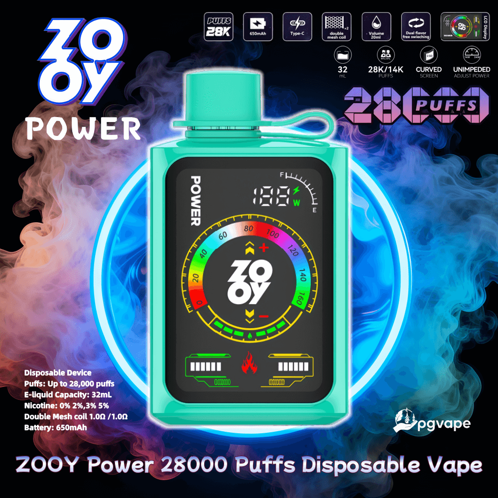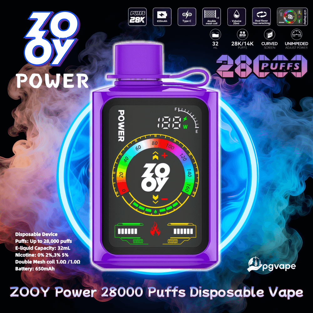 Zooy POWER 28000 Puffs Disposable Vape delivers ultimate vaping performance with 28,000 extended puffs and 32mL e-liquid capacity. Featuring 2%/3%/5% nicotine options, this innovative device combines touchscreen controls with dual mesh coil technology for customized vaping. The 650mAh rechargeable battery with Type-C charging and smart display ensures uninterrupted enjoyment of its 10 premium flavors.