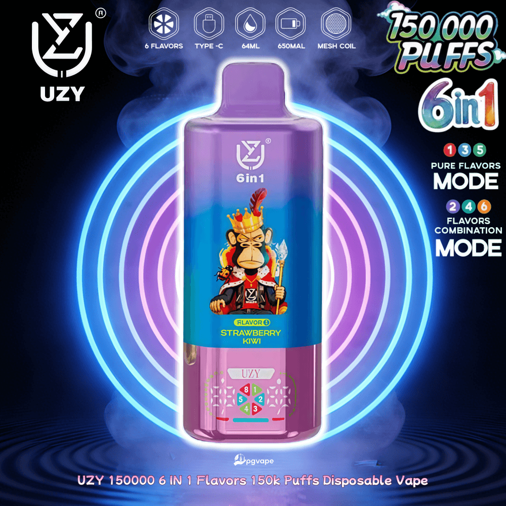 UZY 6 IN 1 150K puffar Engångsvape | Smart högkapacitetsenhet med flera smaker